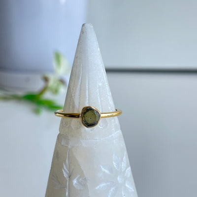 18K Gold Plated Moldavite Ring Sz8