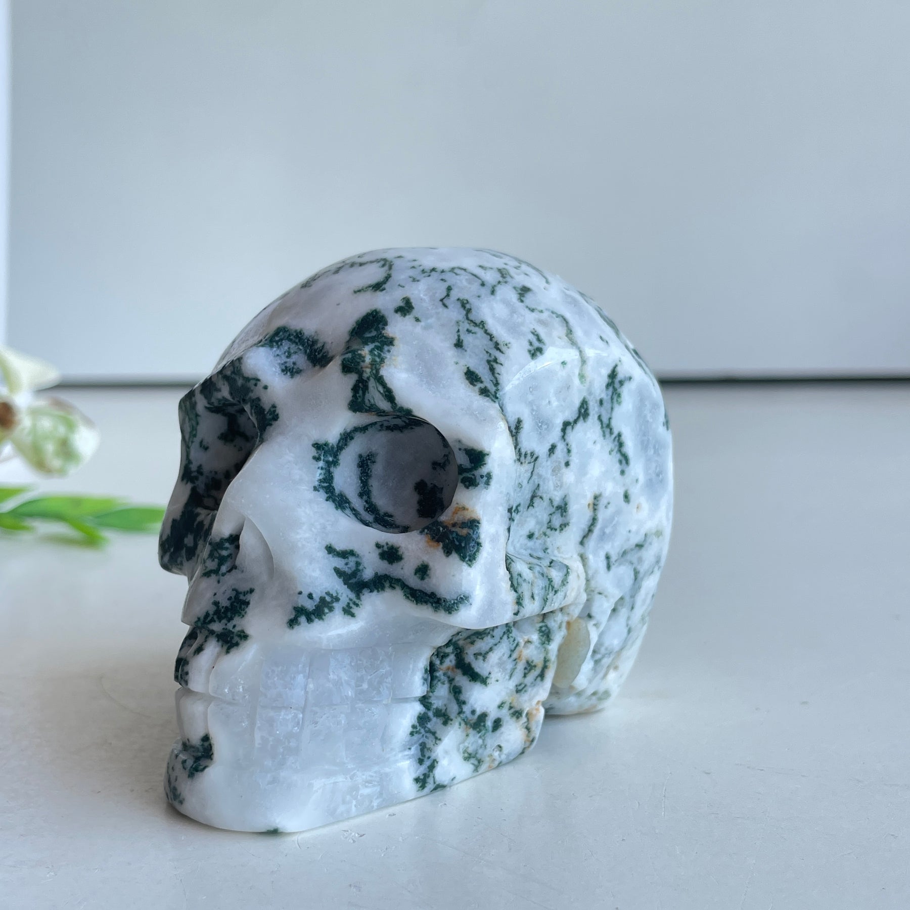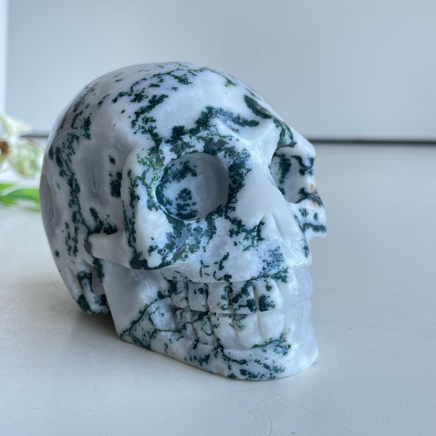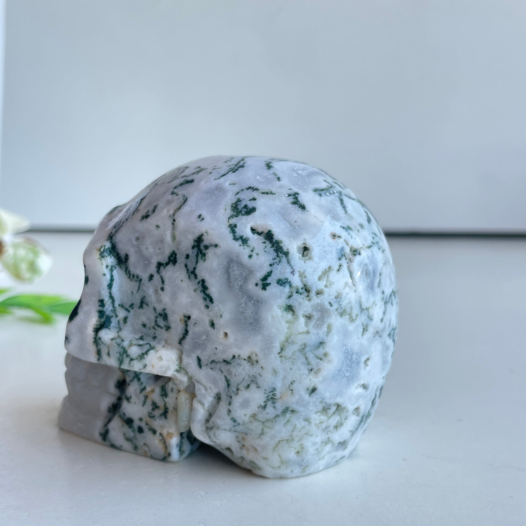 Moss Agate Skull 8cm