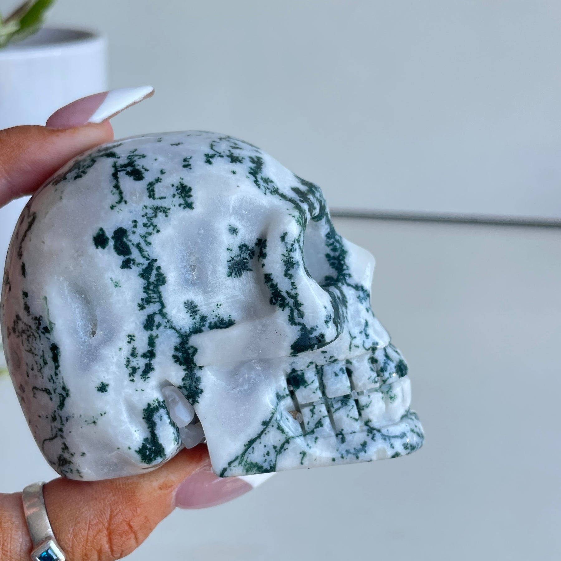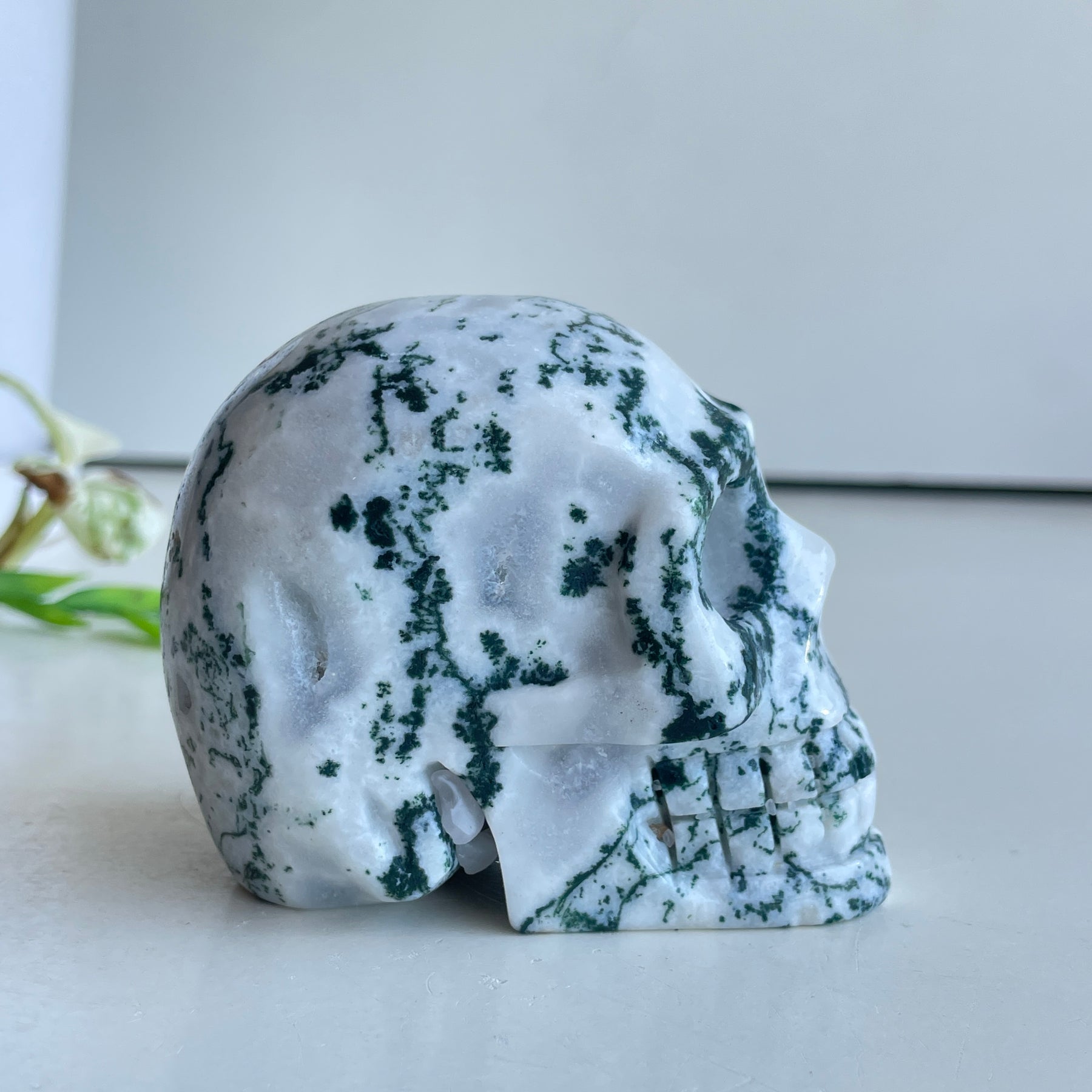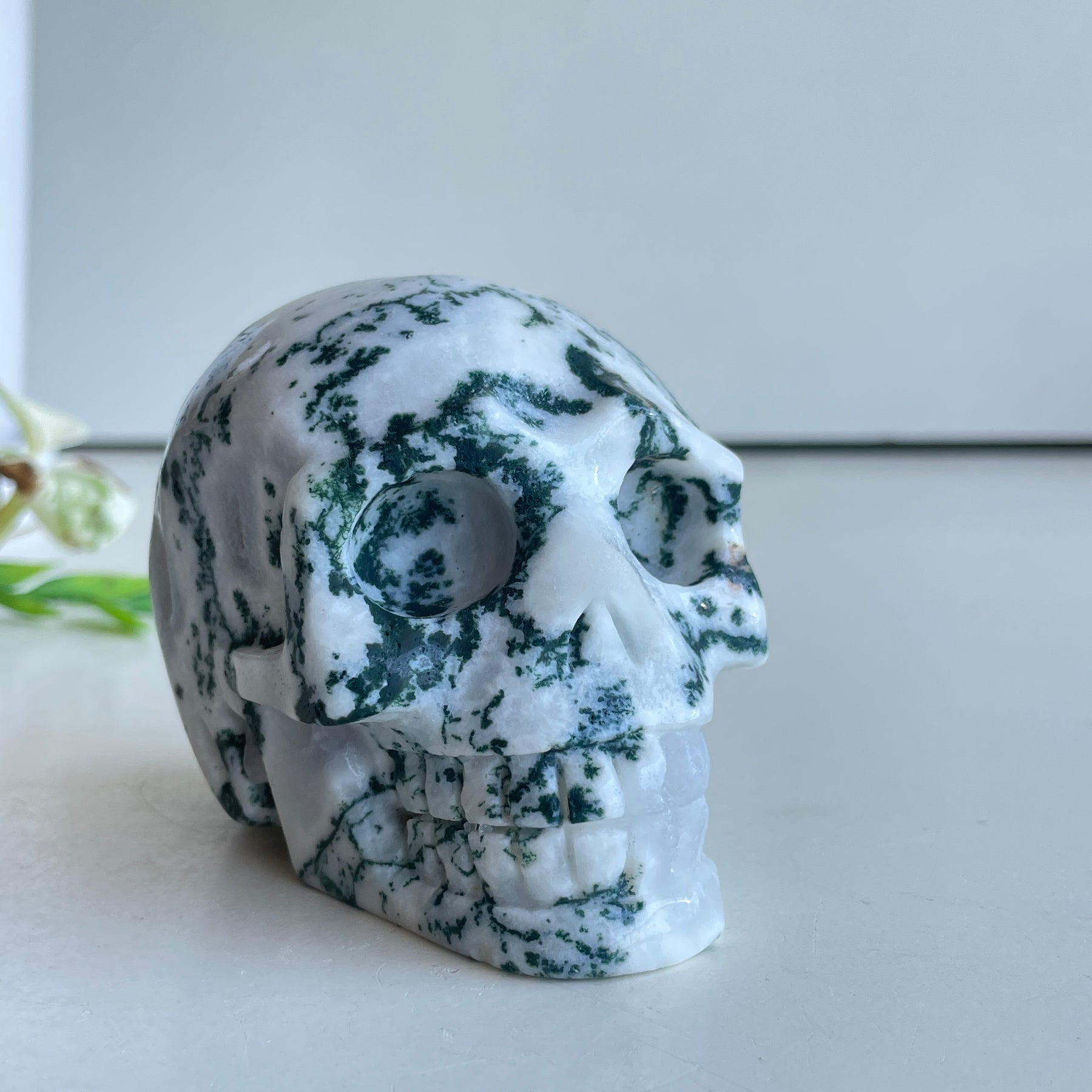 Moss Agate Skull 8cm