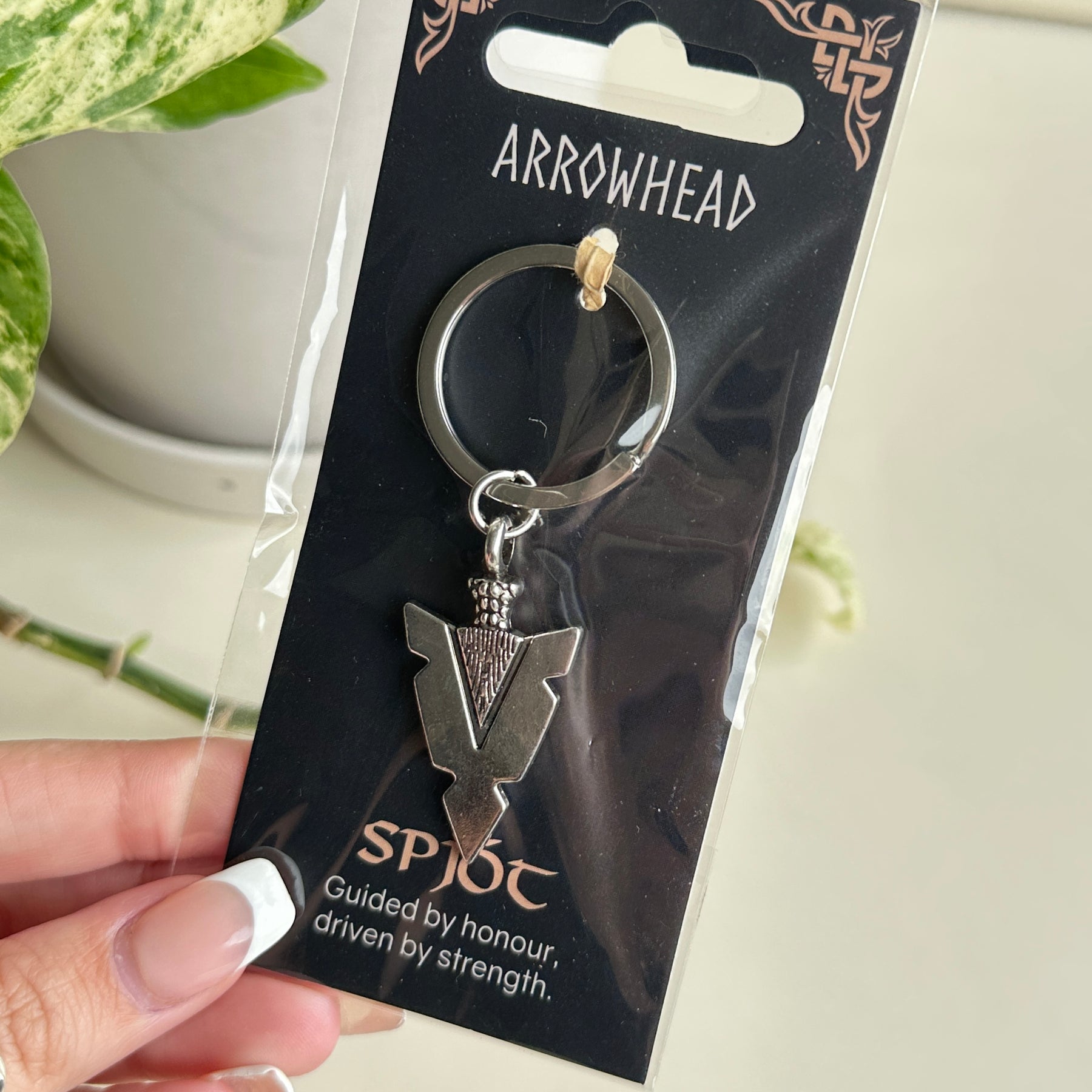Evoking the spirit of Norse weaponry, this Spjot arrowhead keyring embodies sharp focus and direction.