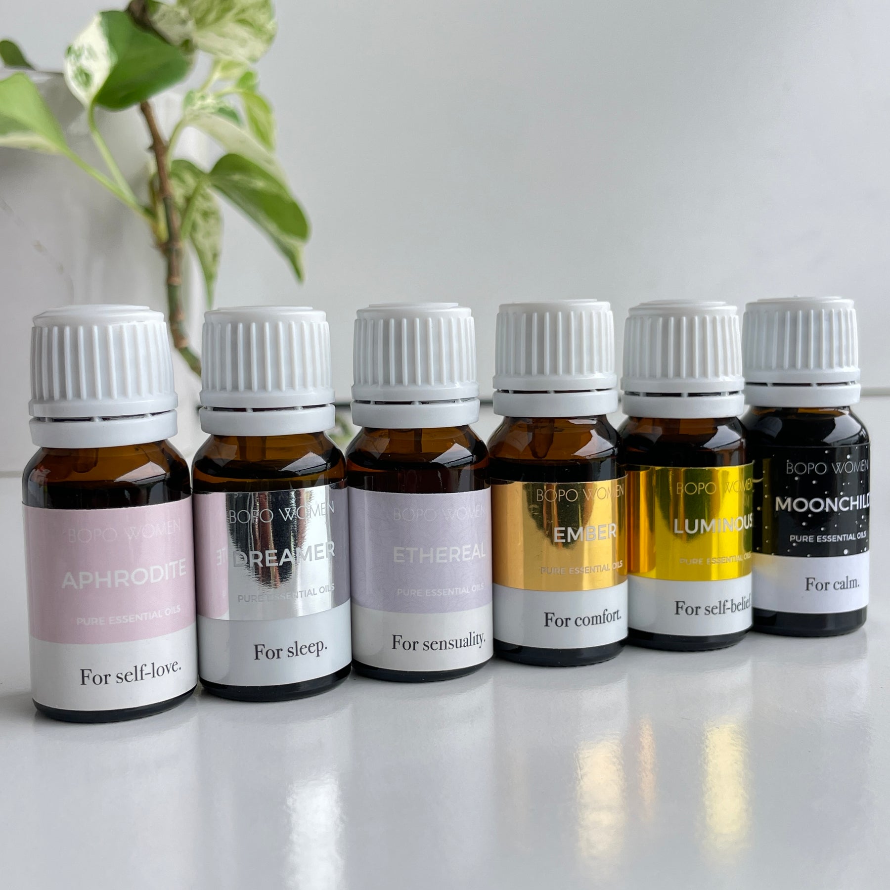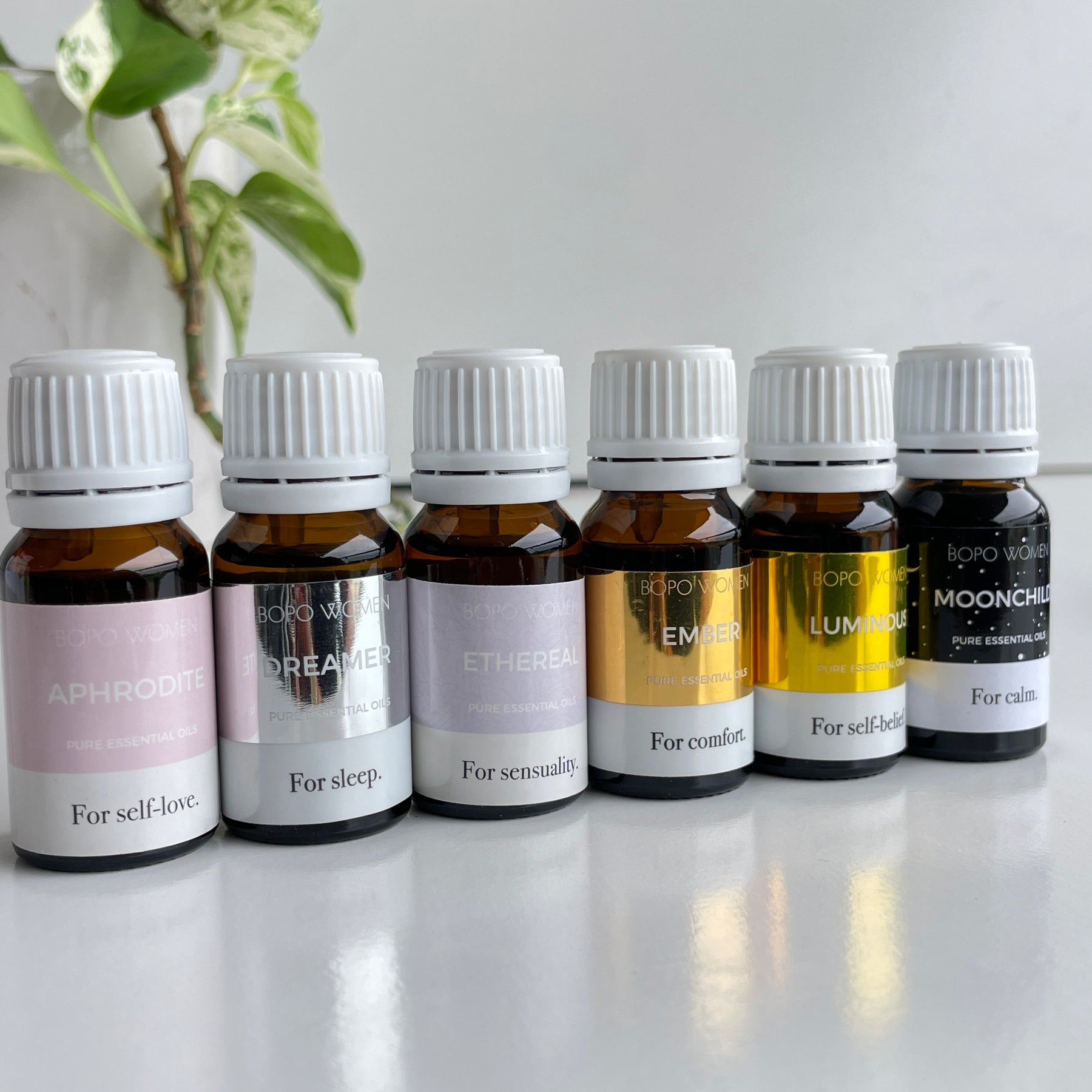 Aphrodite: Ylang ylang with grapefruit oil, sweet orange oil, patchouli oil and mandarin oil