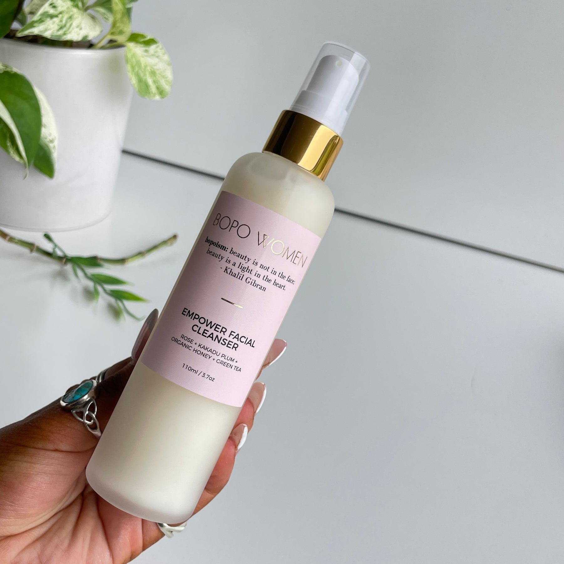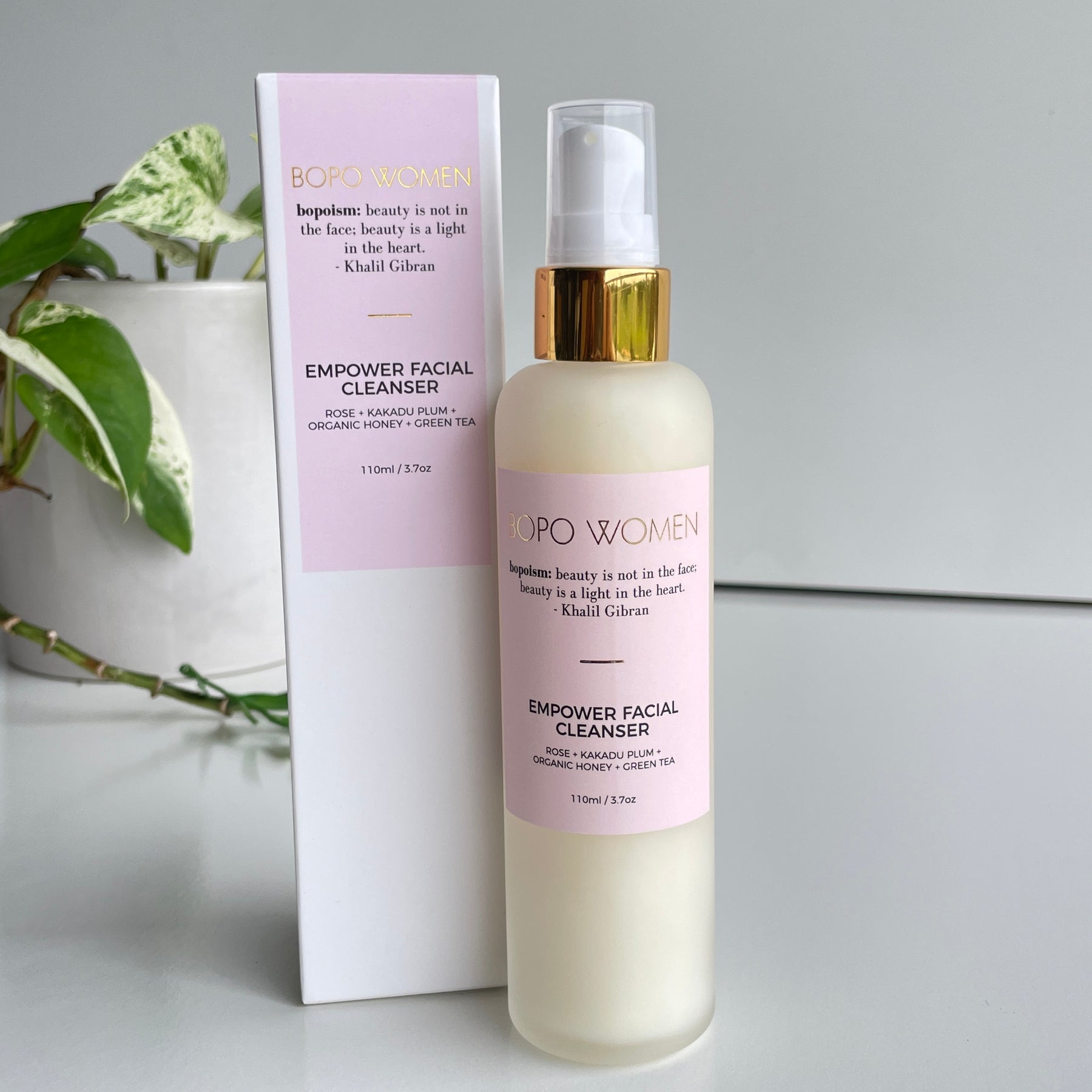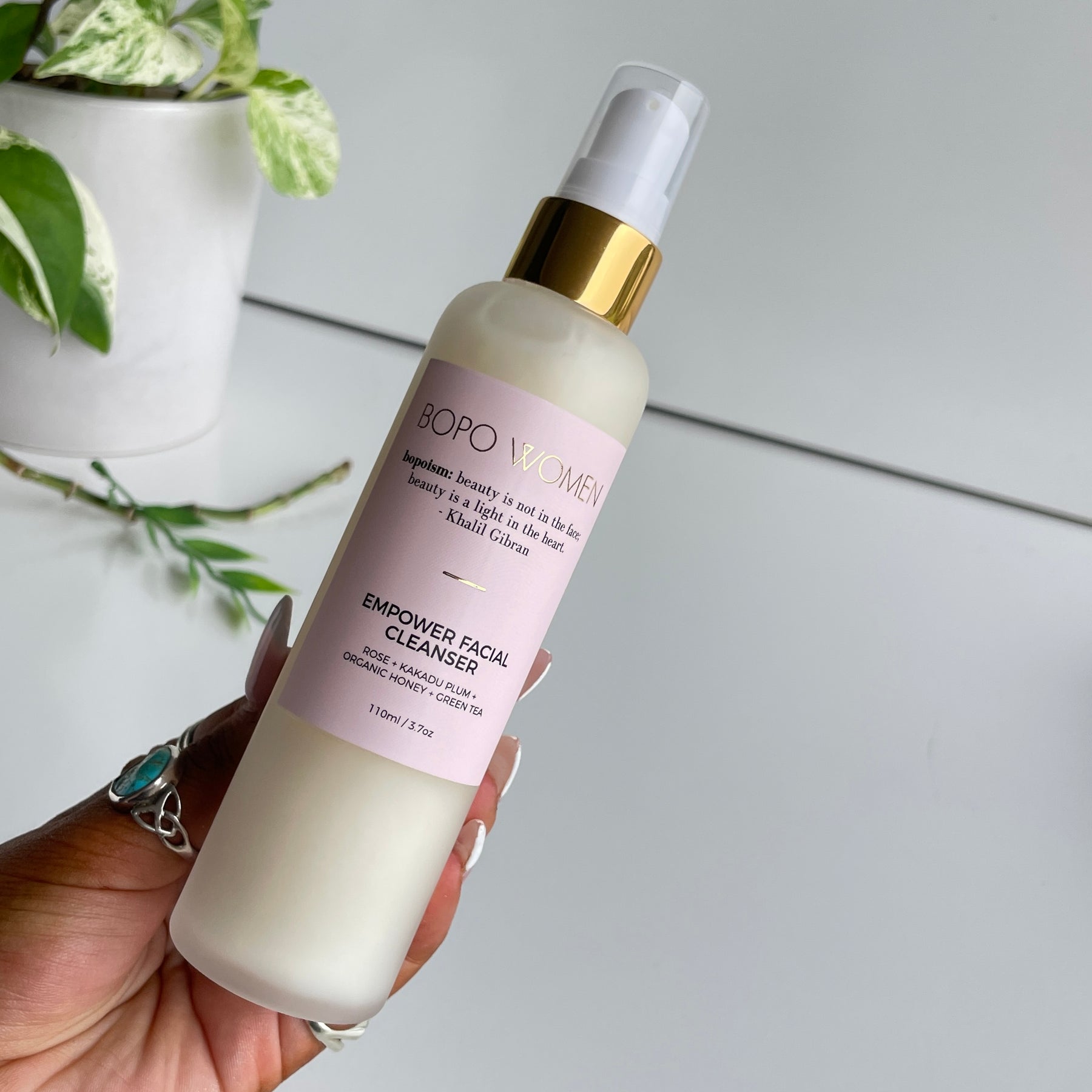 A lightly foaming gel-to-milk cleanser enriched with nourishing Australian botanicals and rose absolute. This wonder wash leaves skin feeling completely clean, protected and balanced without stripping it of precious natural oils. Macadamia, organic honey, aloe vera leaf juice, green tea extract and jojoba deliver concentrated moisture, while Australian Kakadu plum provides an antioxidant hit. Comes in a luxe handmade frosted glass bottle.