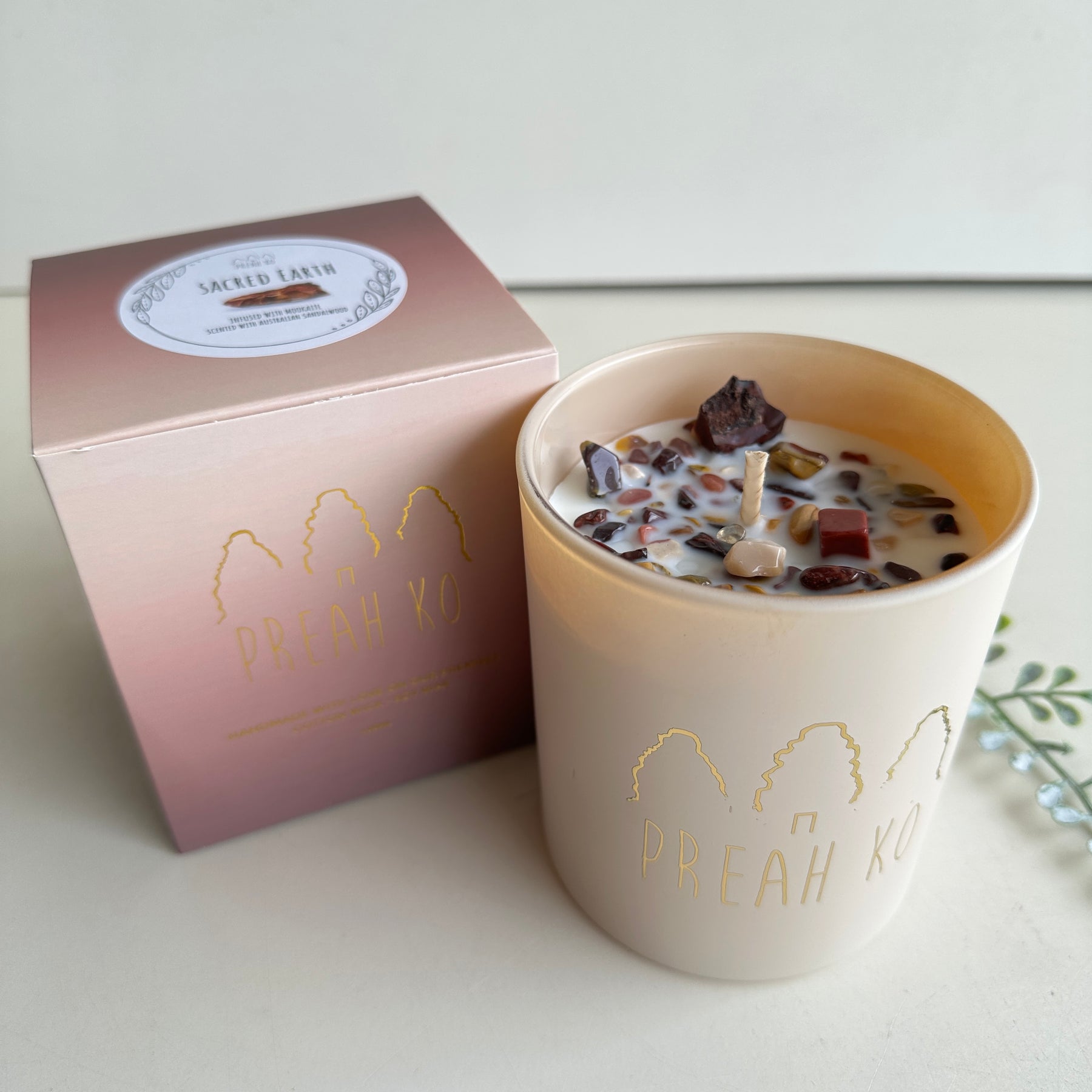 Candle: Topped with Mookaite (only found in Australia). Soy Wax. 400ml