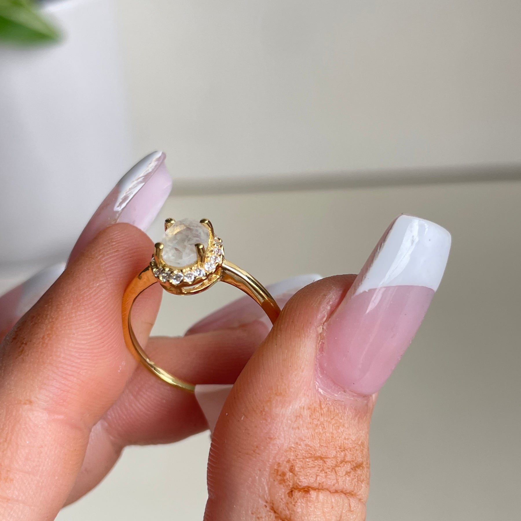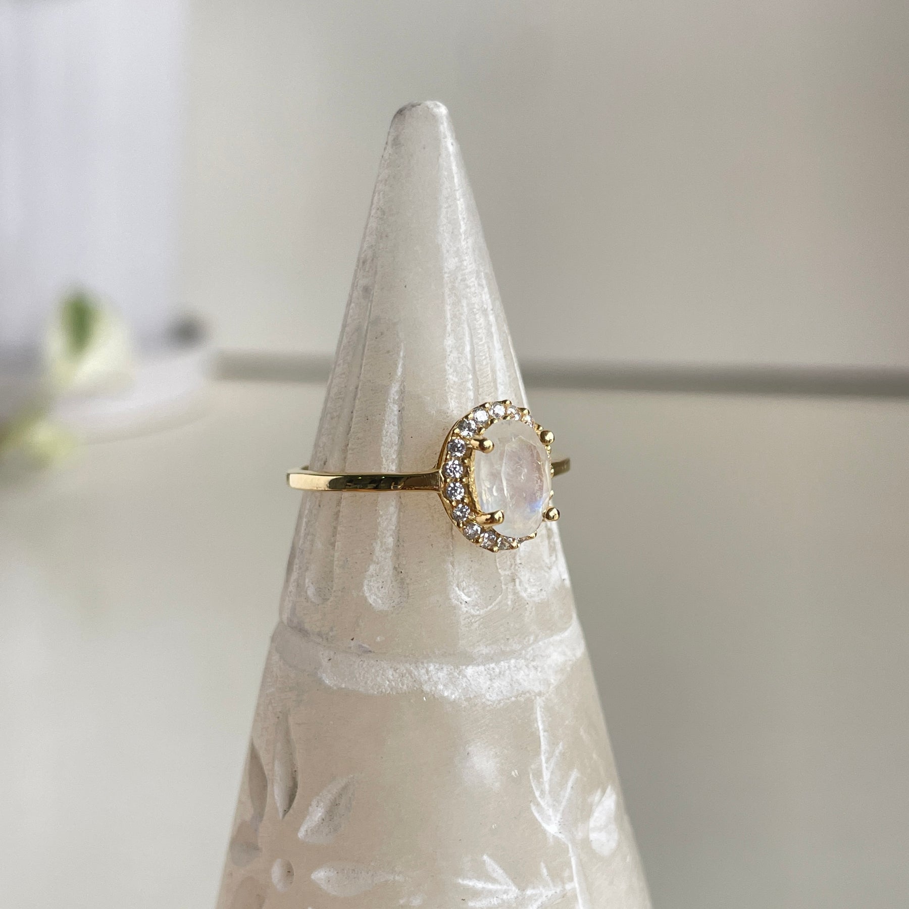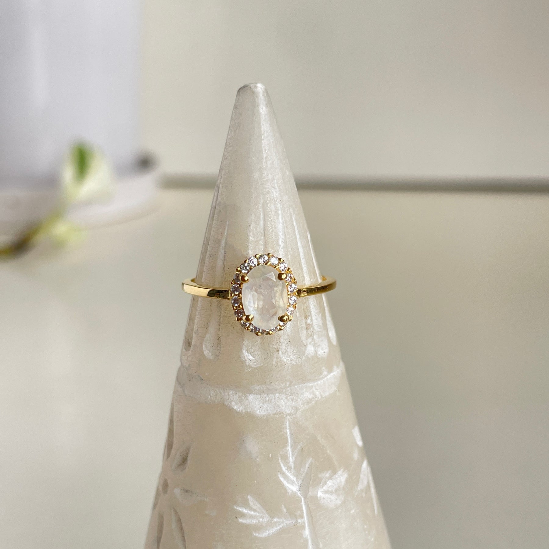 18k Gold Plated Moonstone Oval Ring With Cubic Zirconias