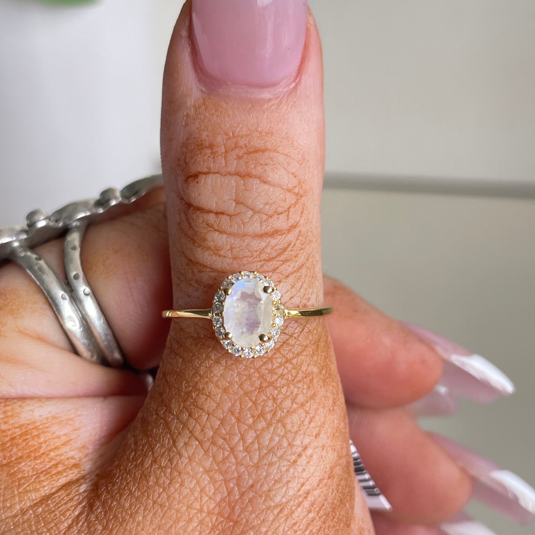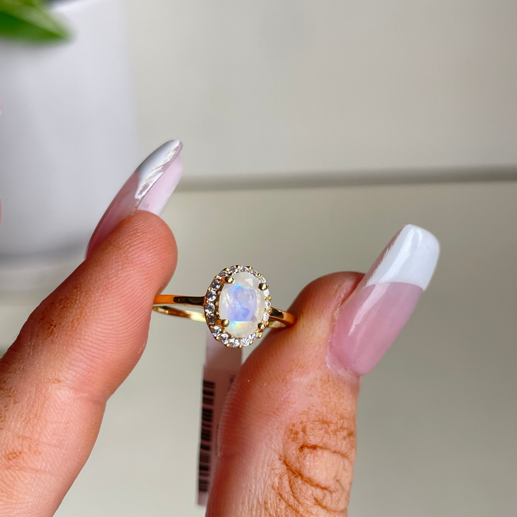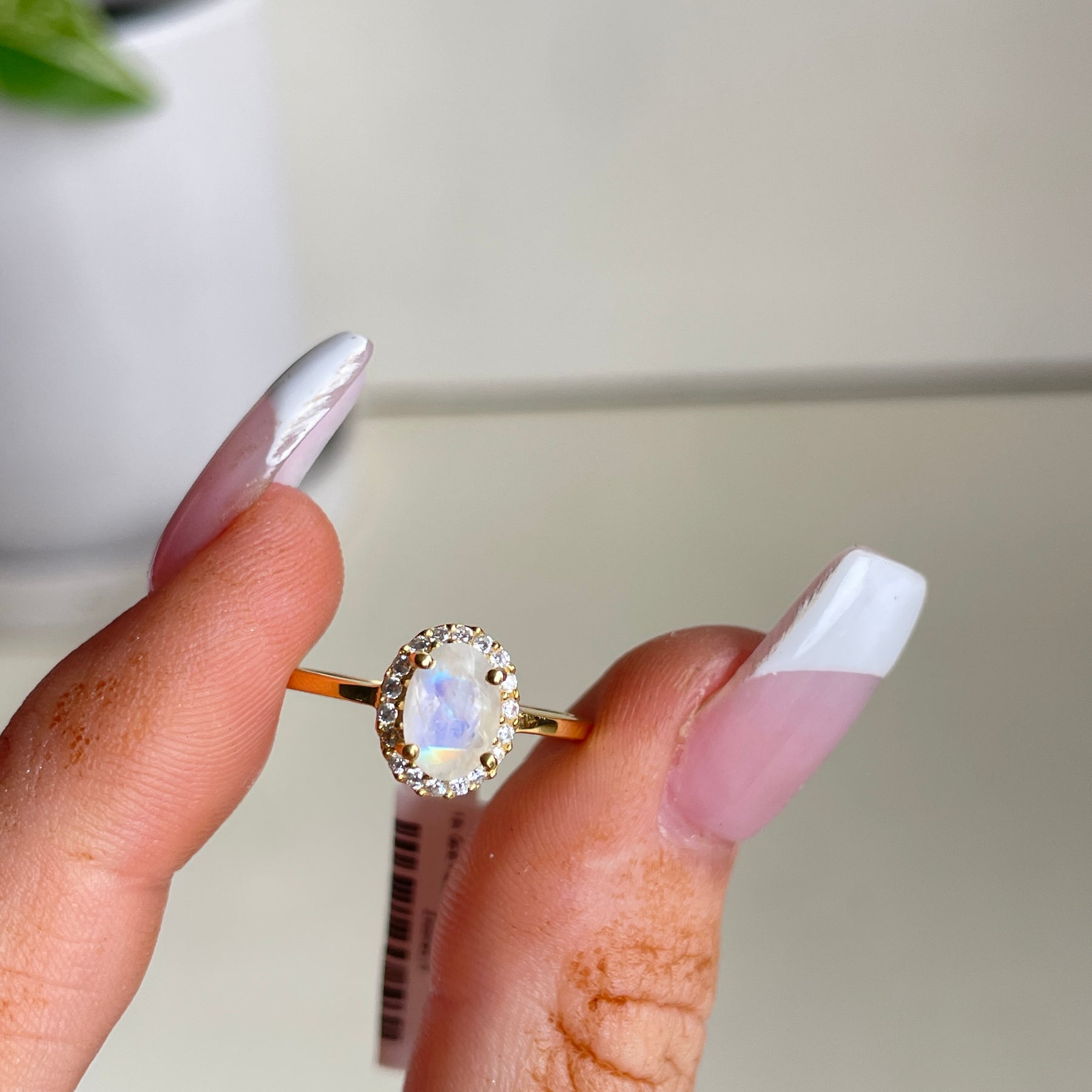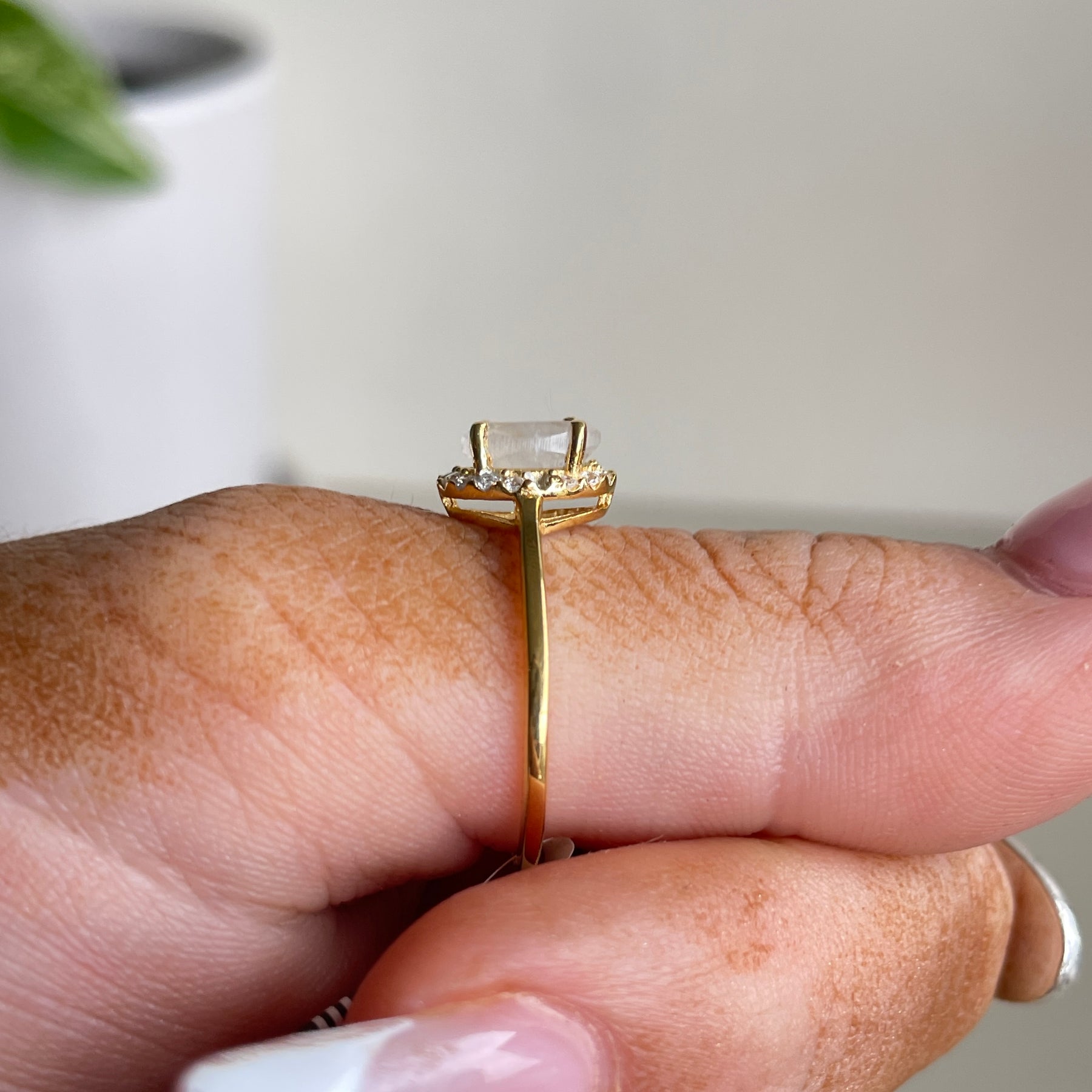 18k Gold Plated Moonstone Oval Ring With Cubic Zirconias