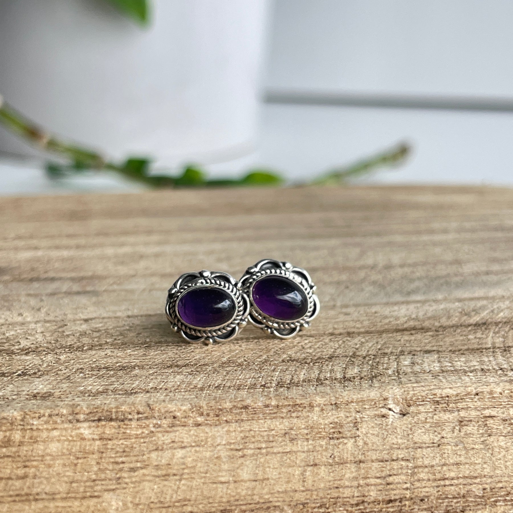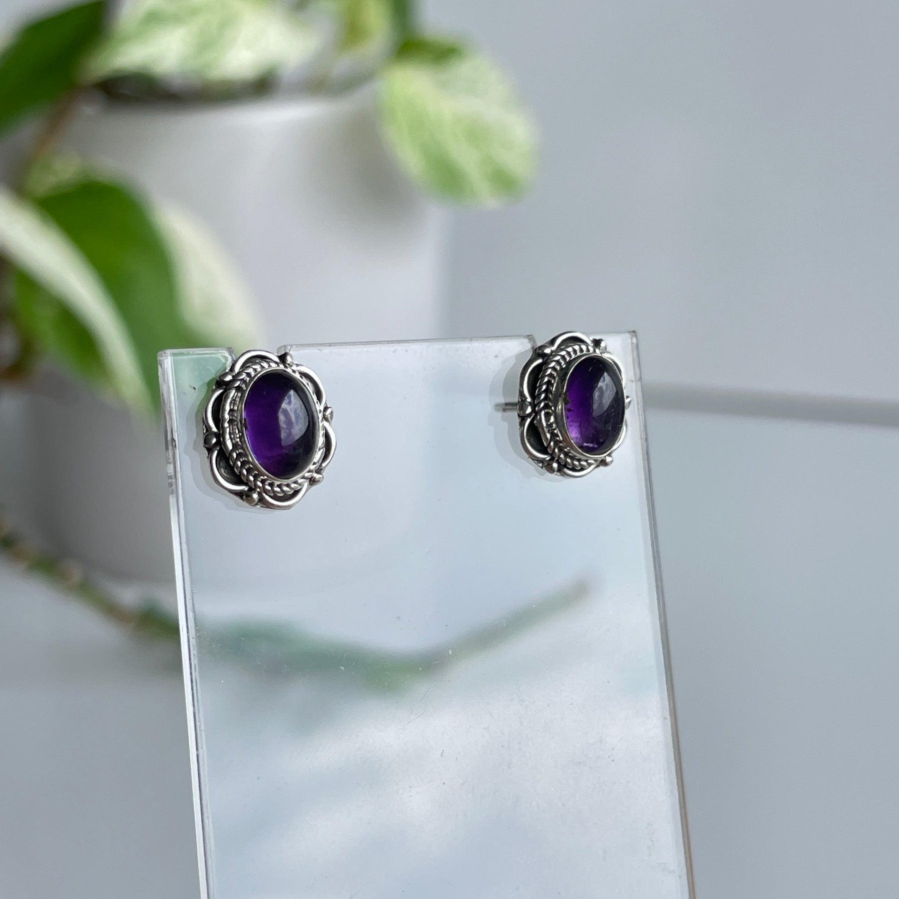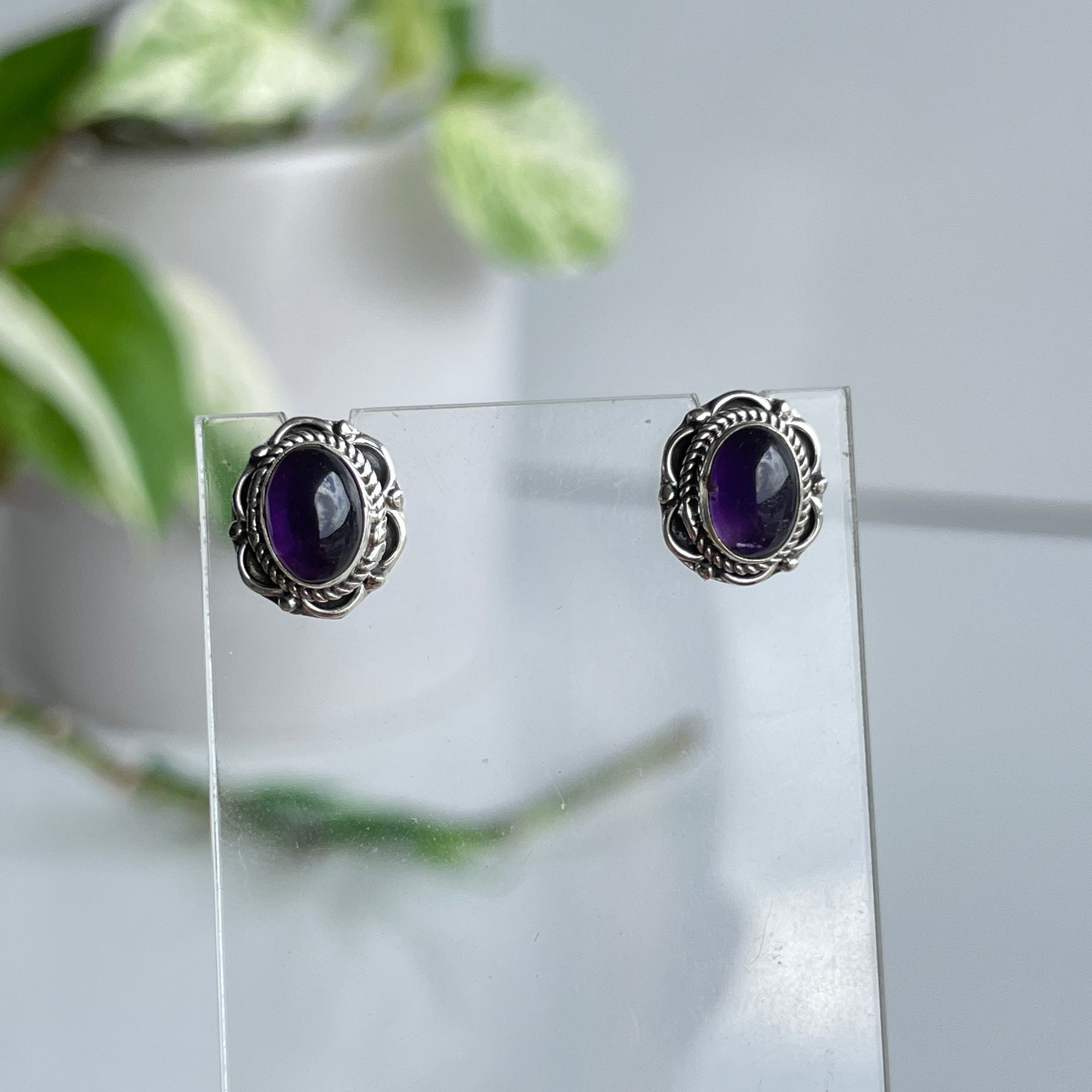 Amethyst Oval Studs 001