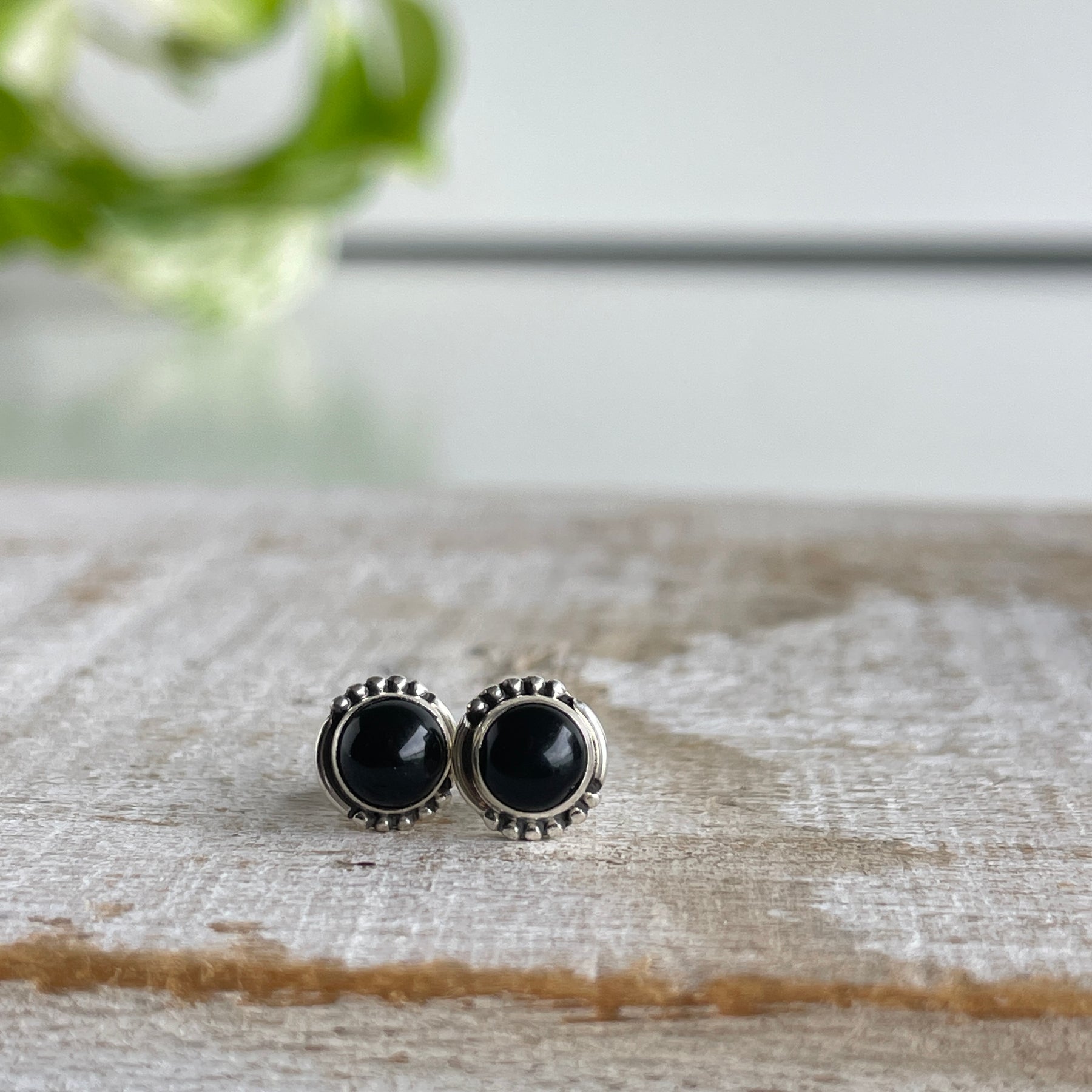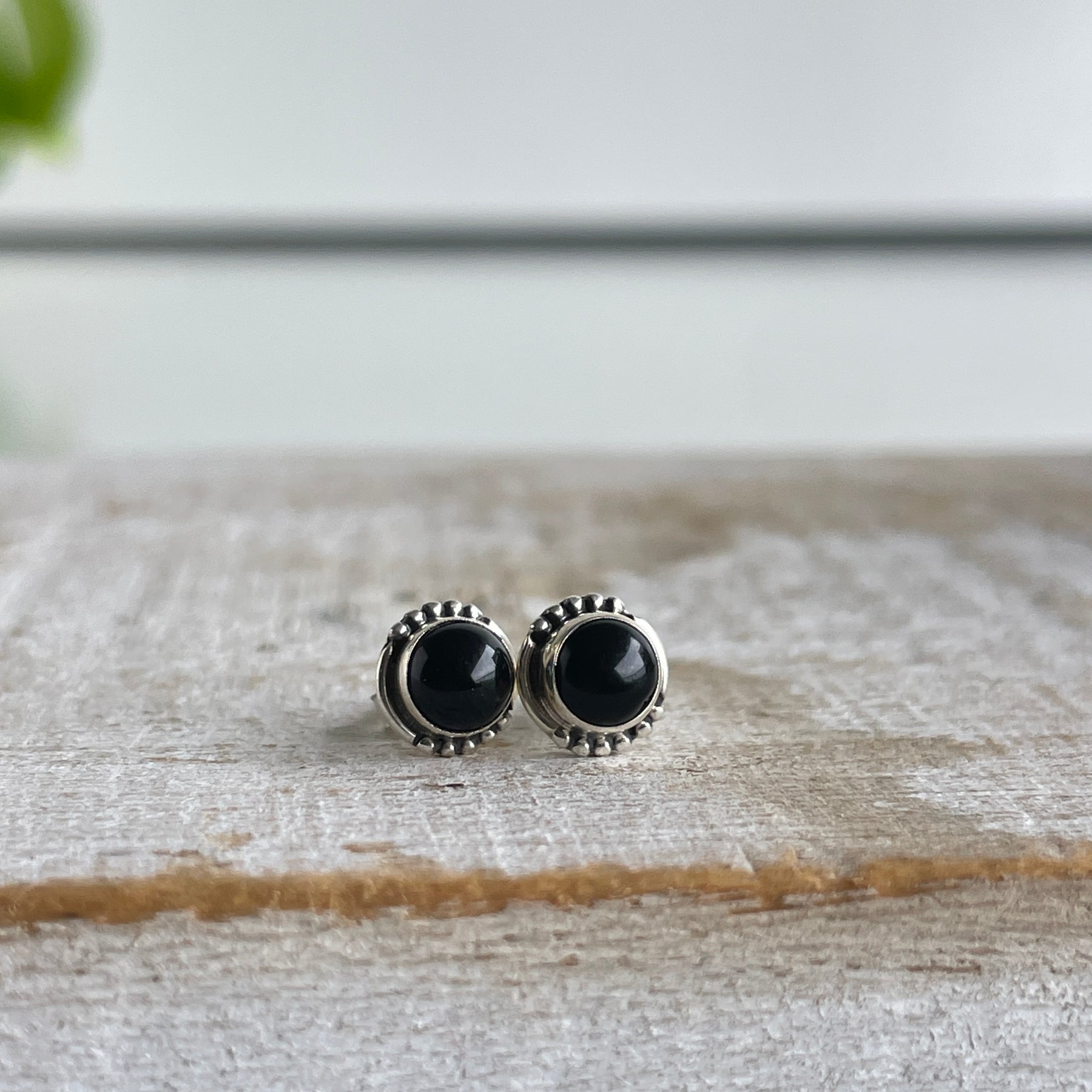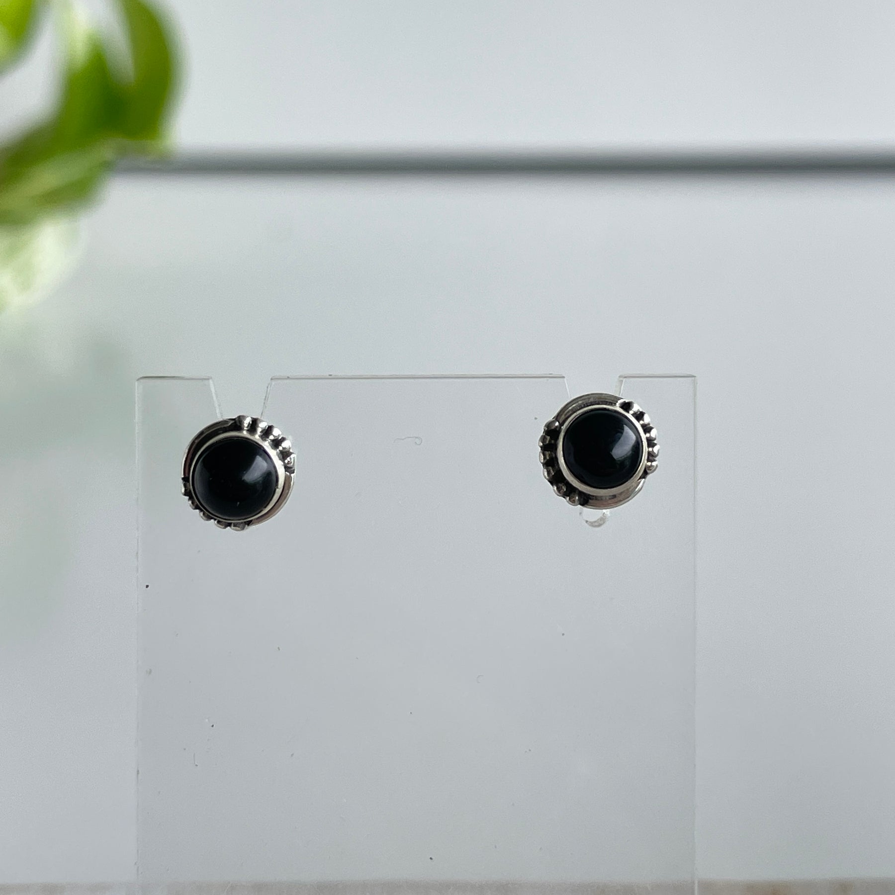 Black Onyx Round Stud Earrings