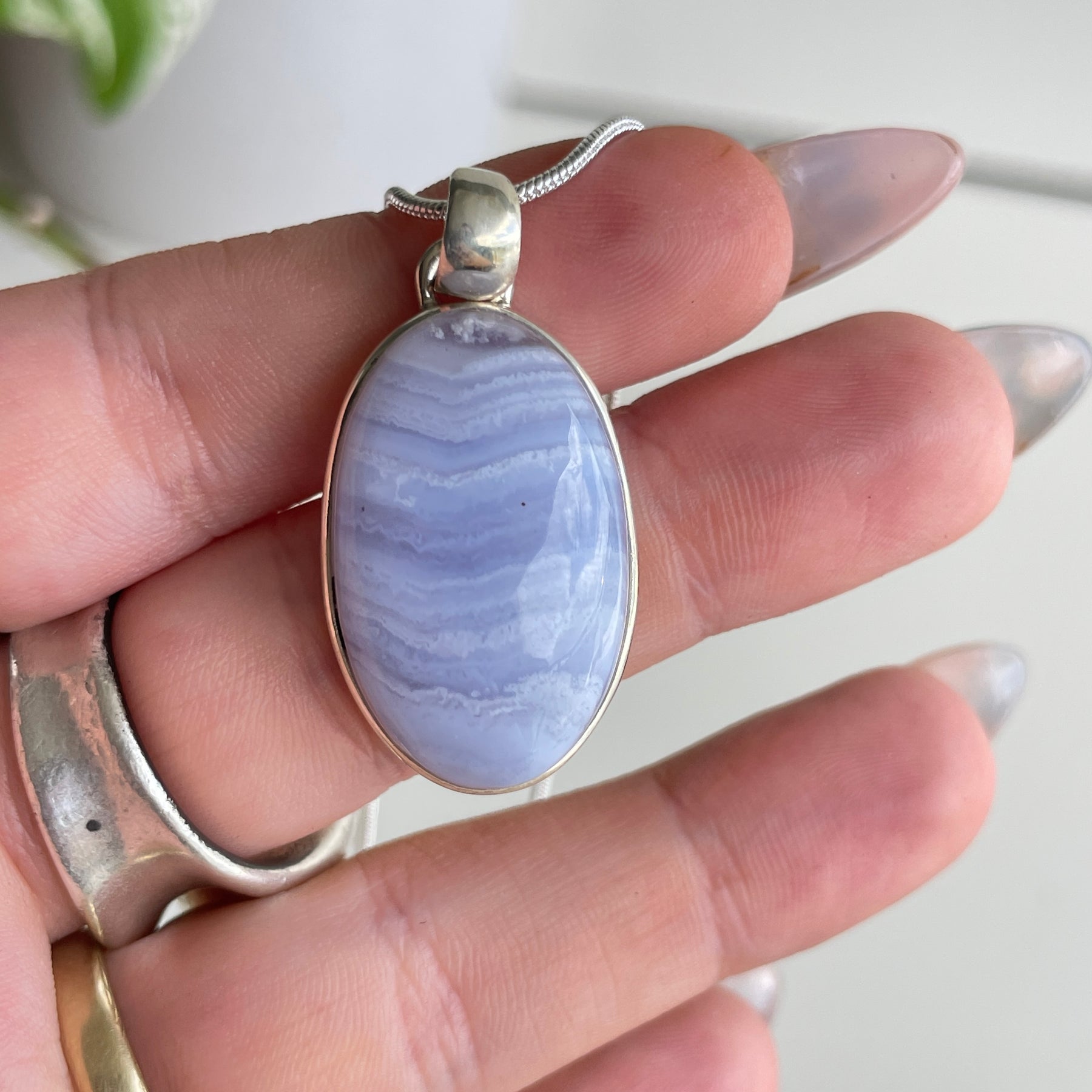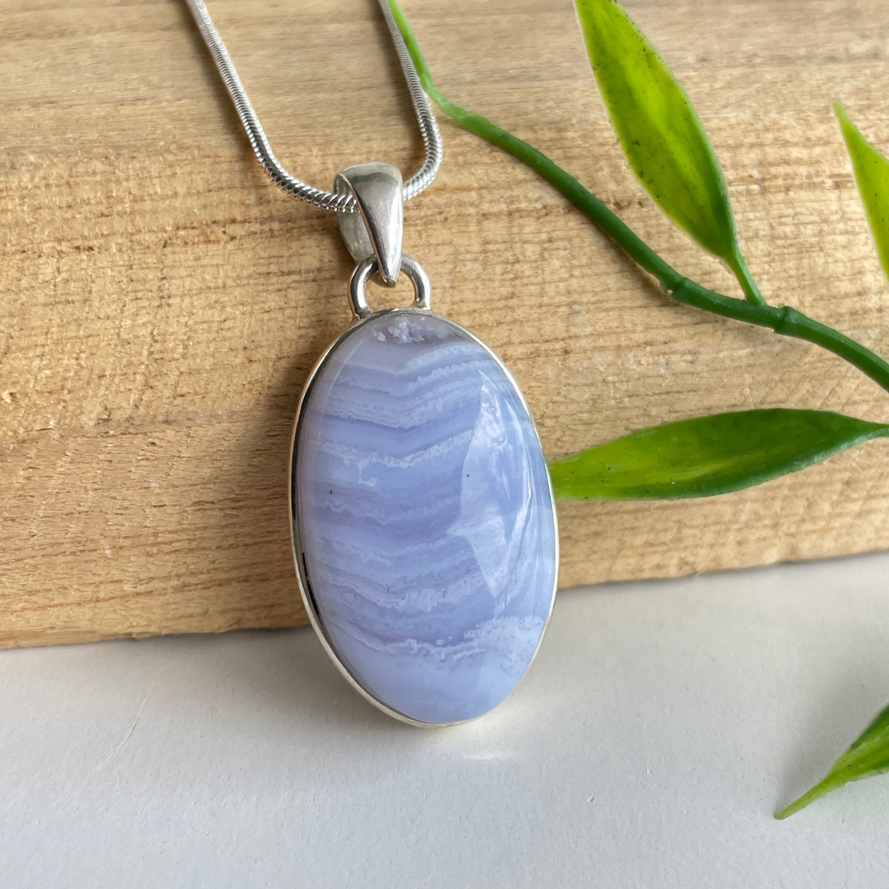 Blue Lace Agate Oval Pendant