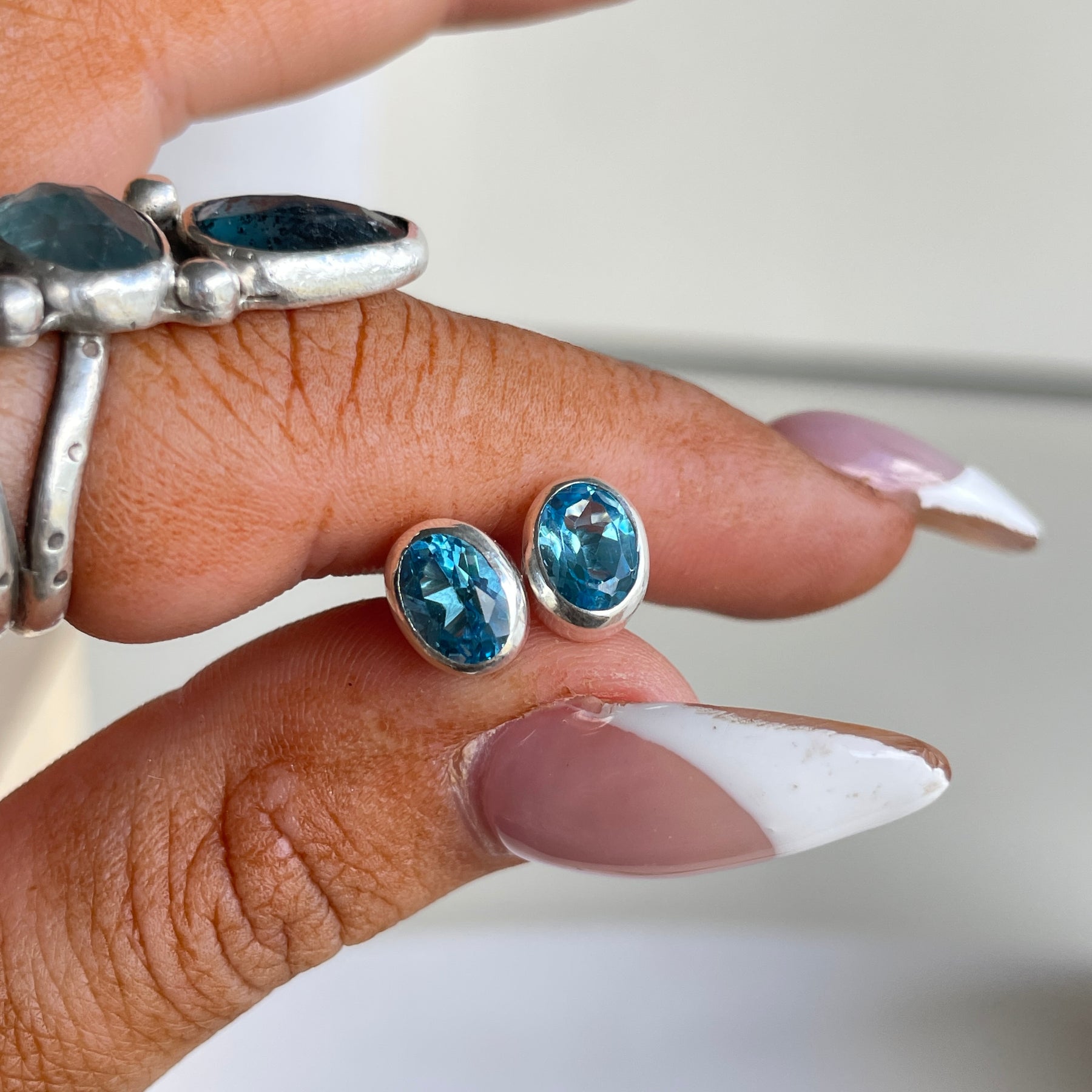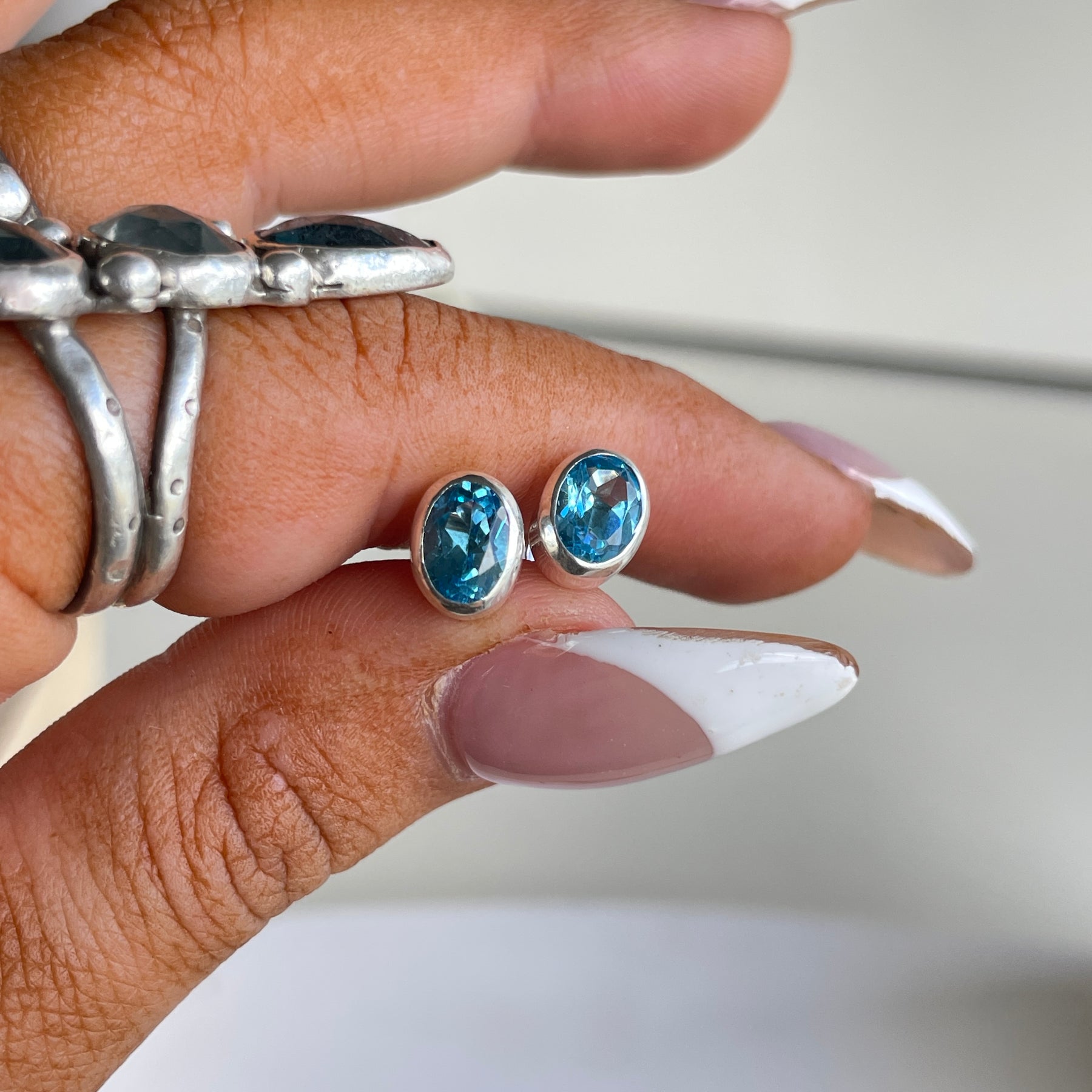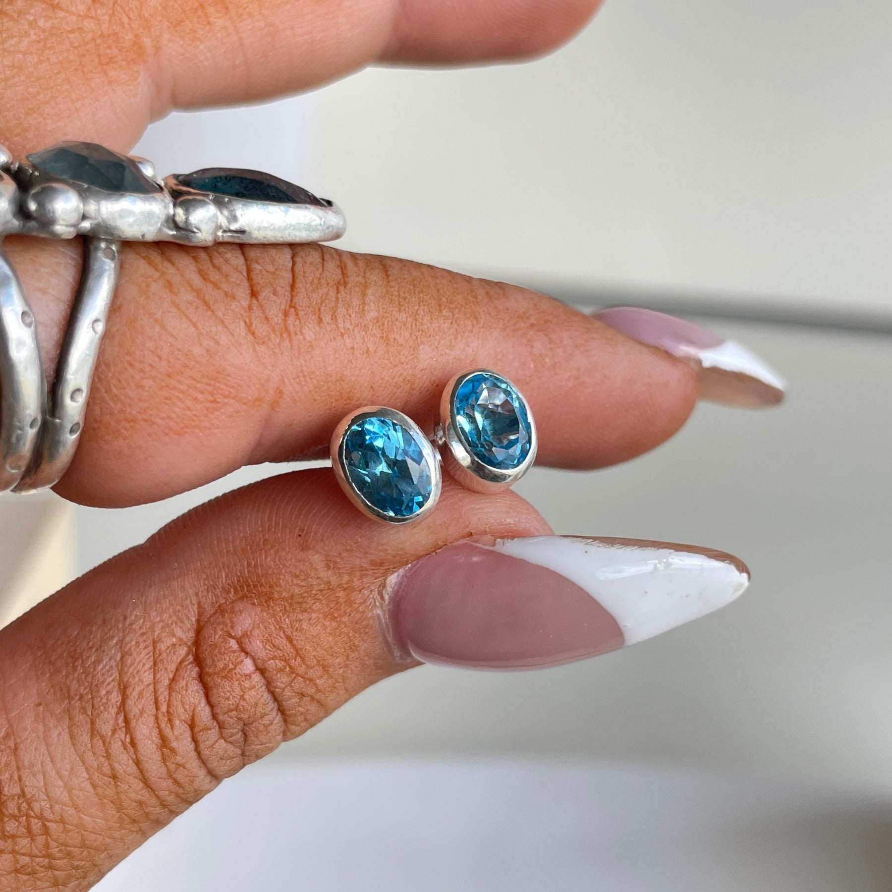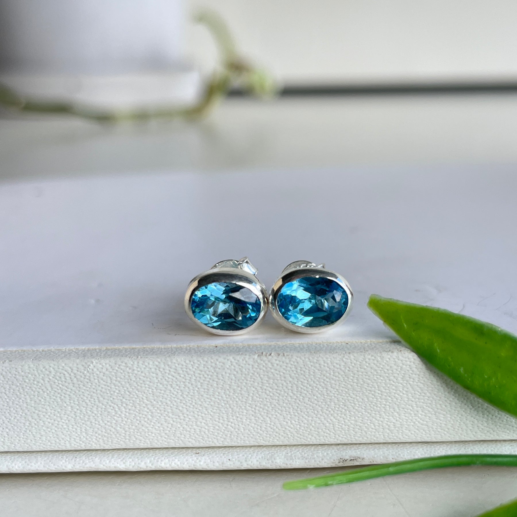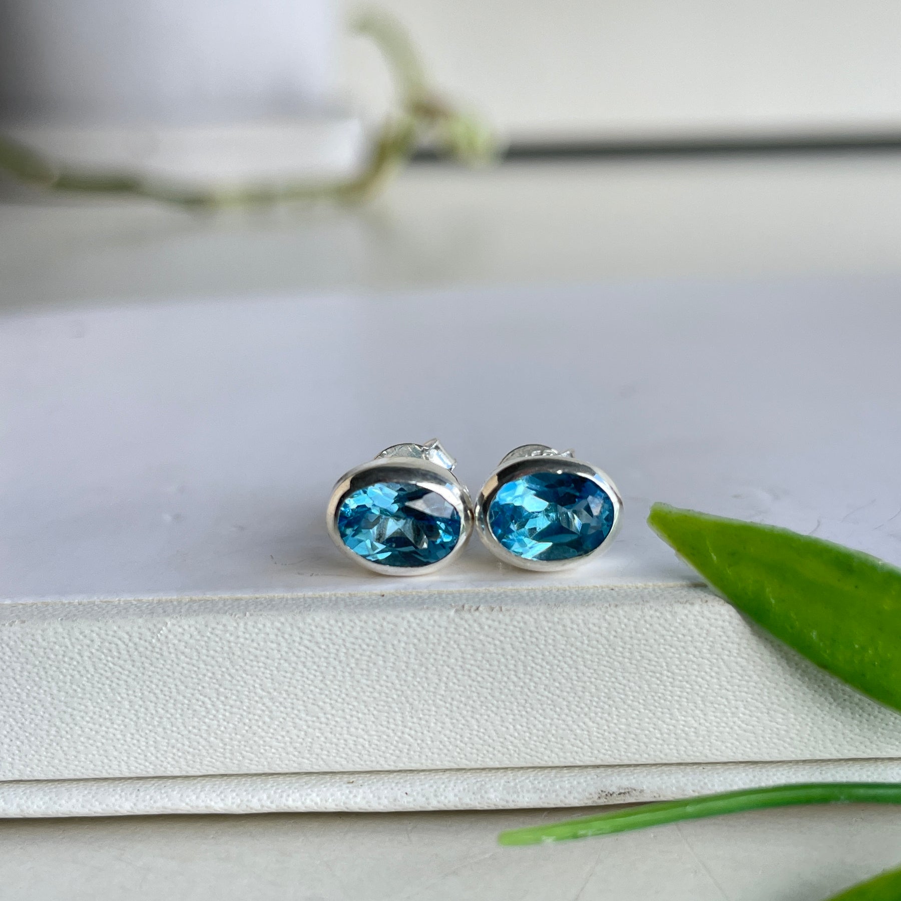 Blue Topaz Oval Stud Earrings