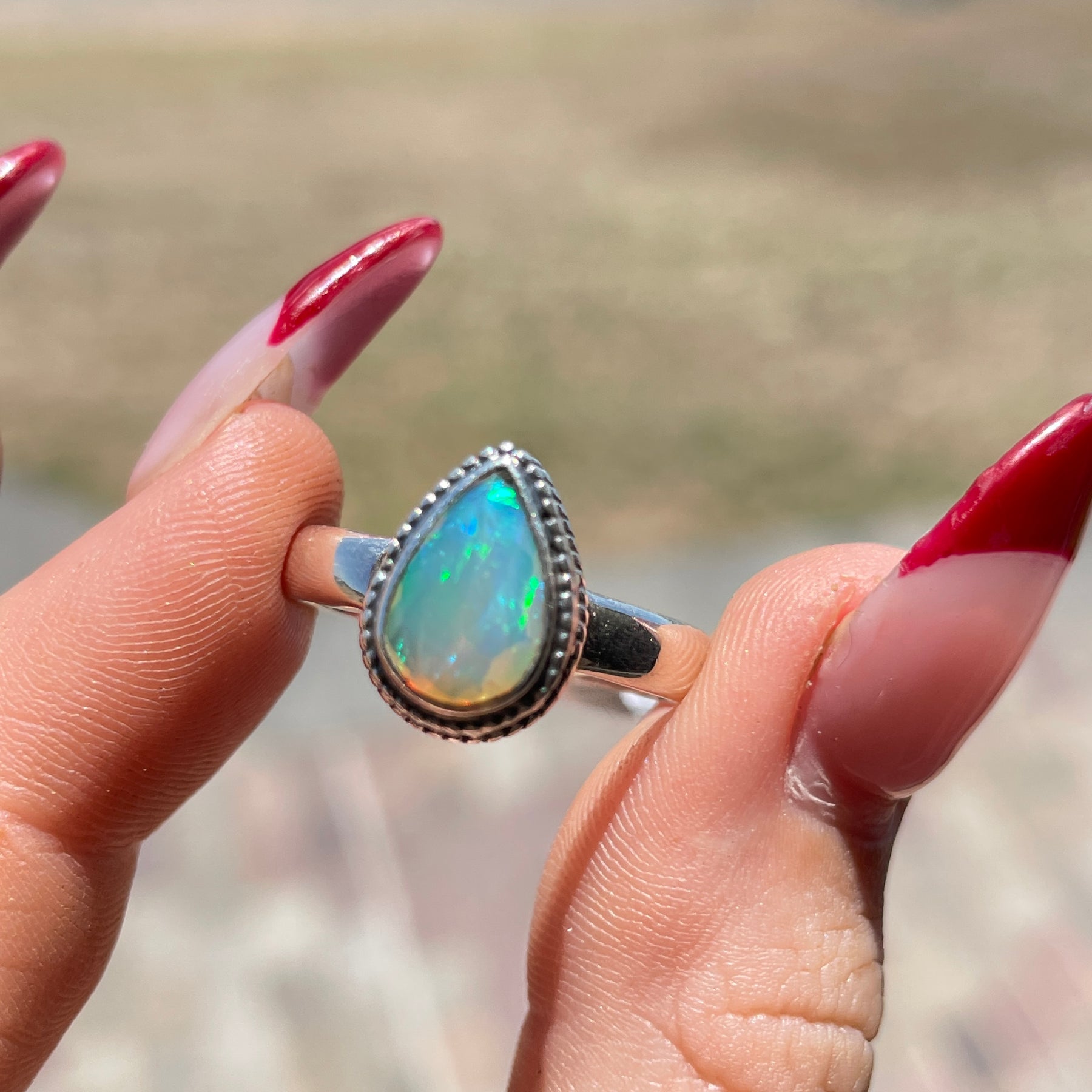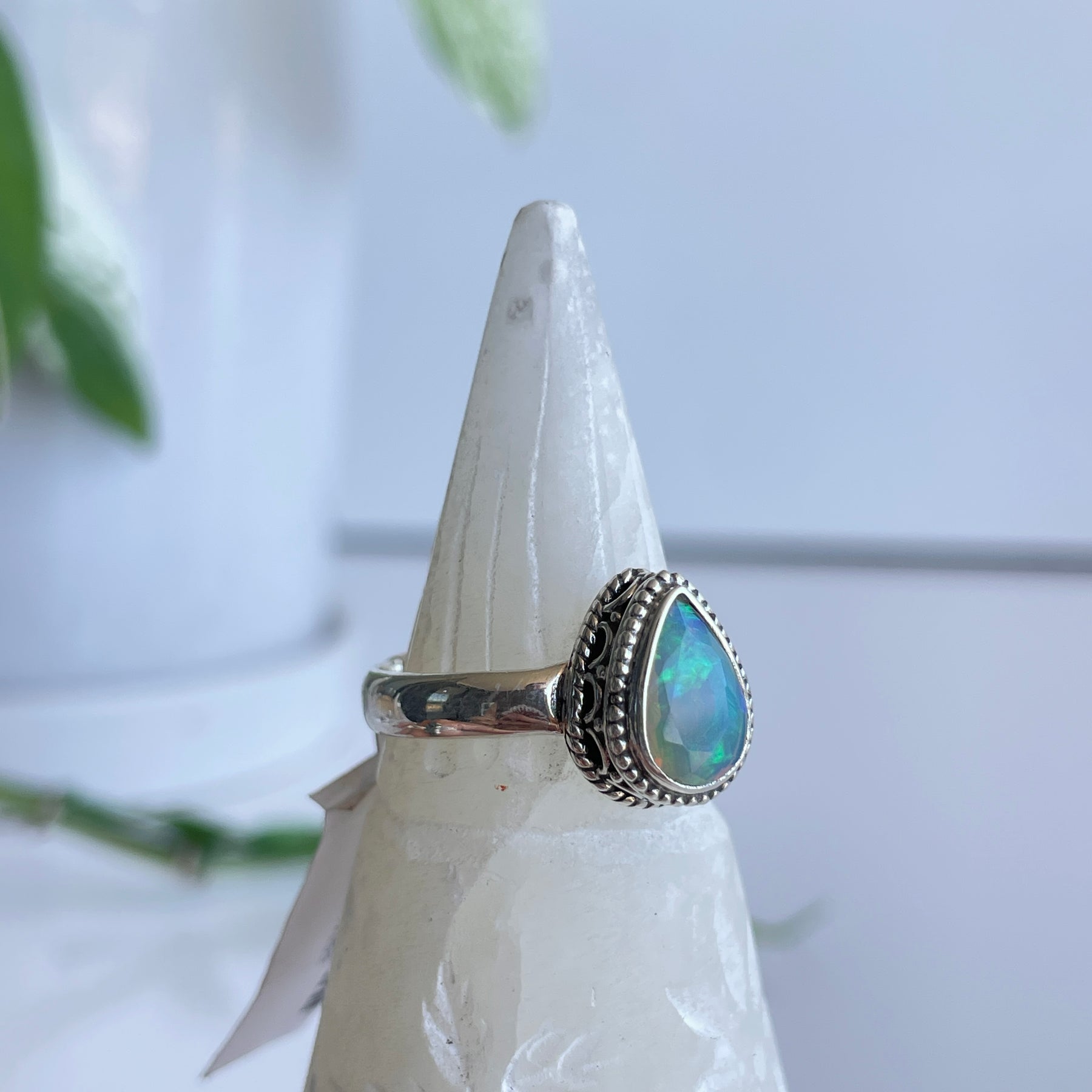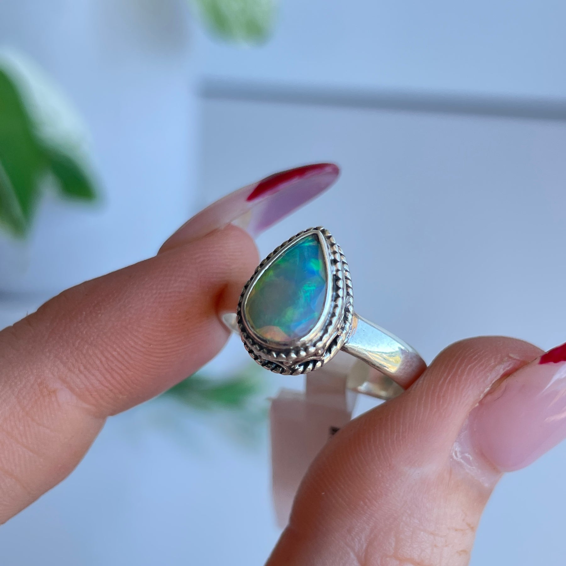 Ethiopian Opal Teardrop Ring Sz8.5