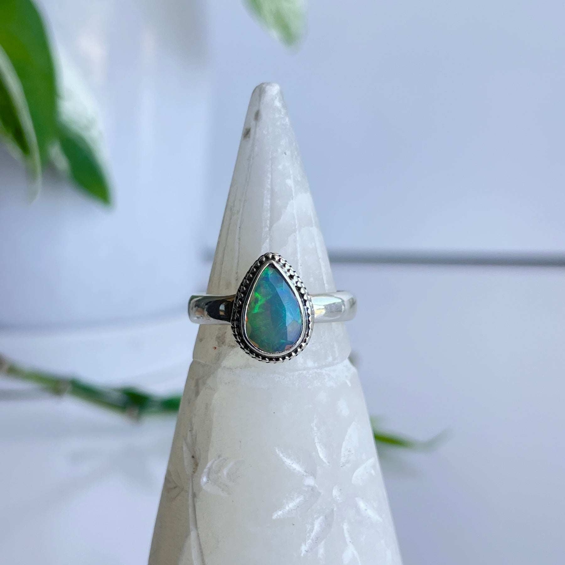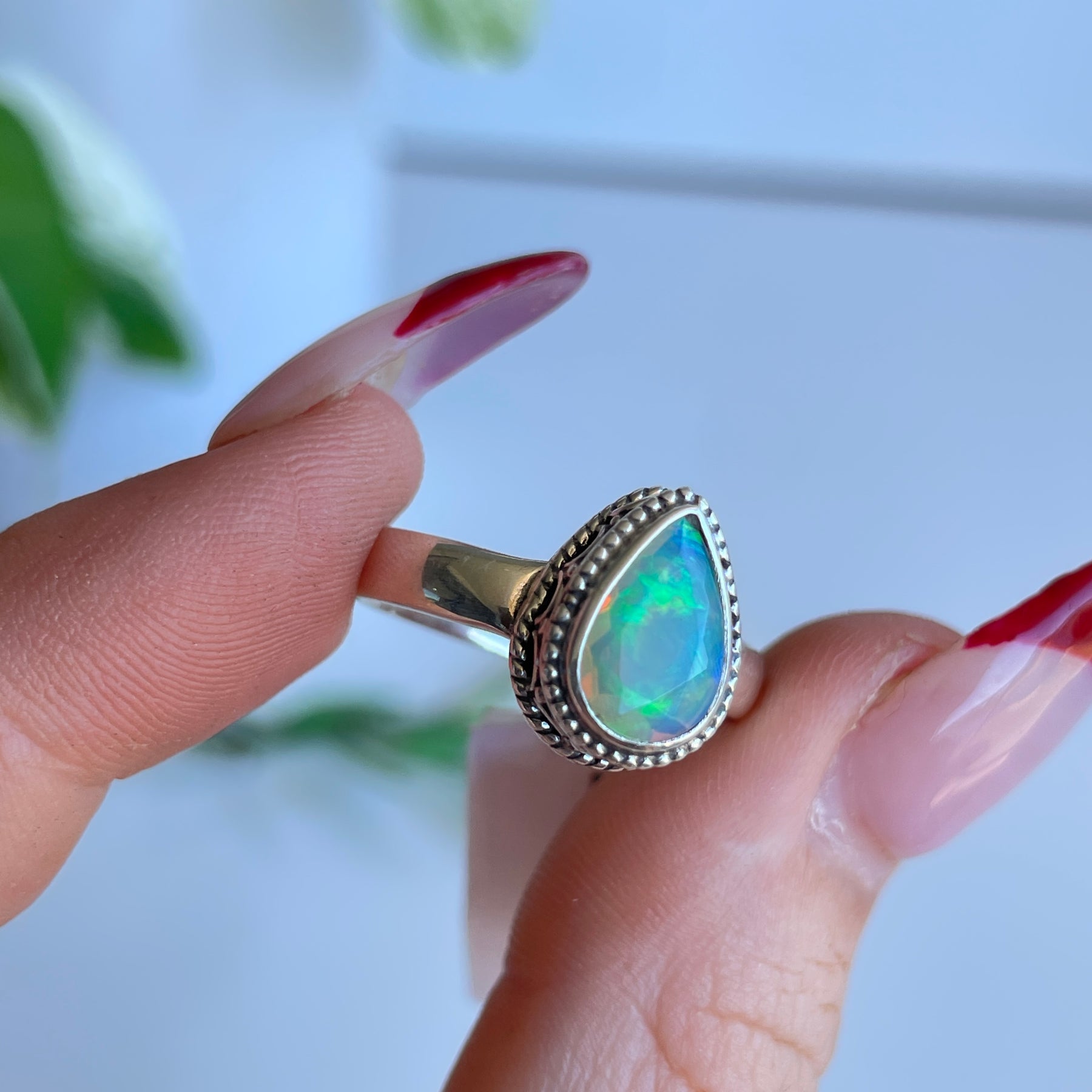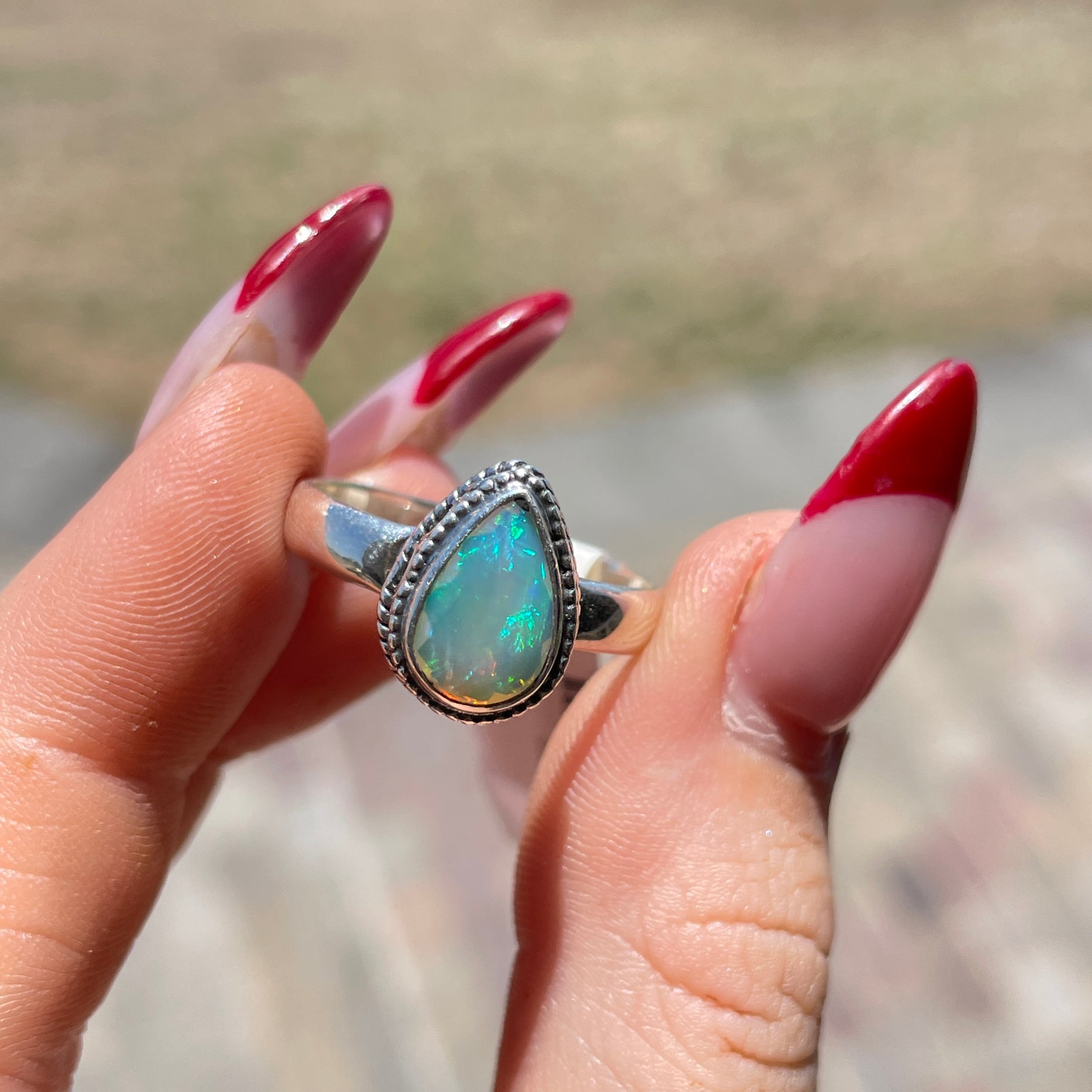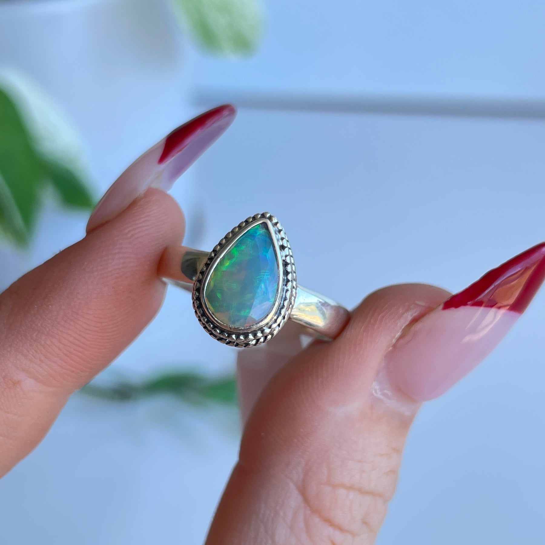 Ethiopian Opal Teardrop Ring Sz8.5