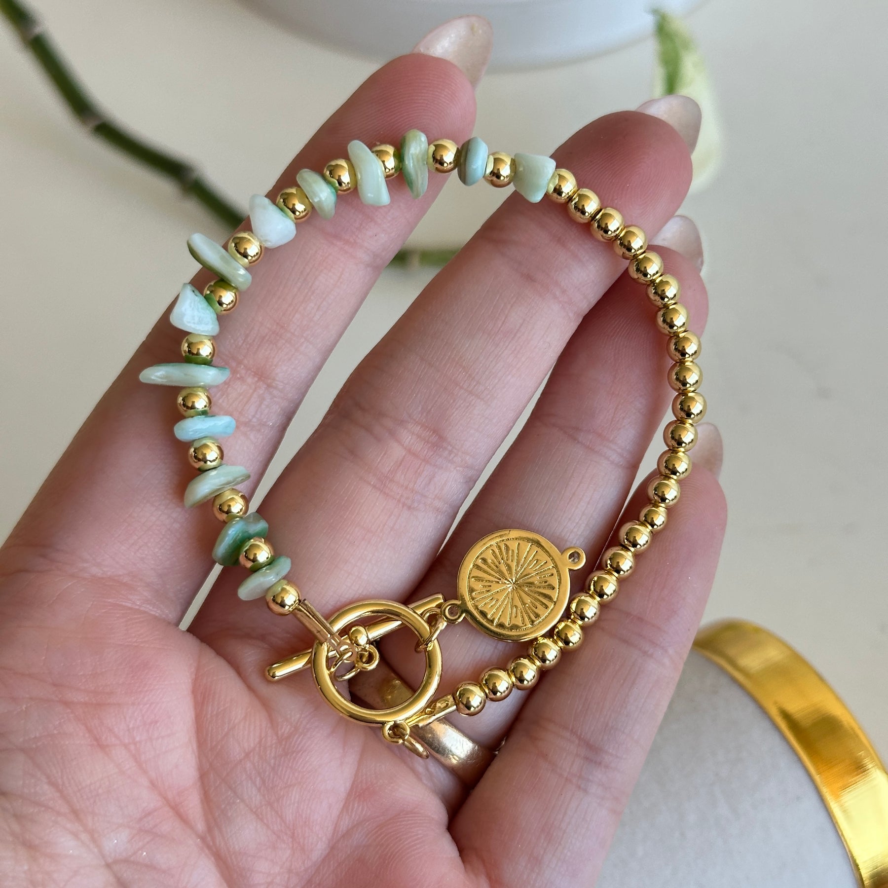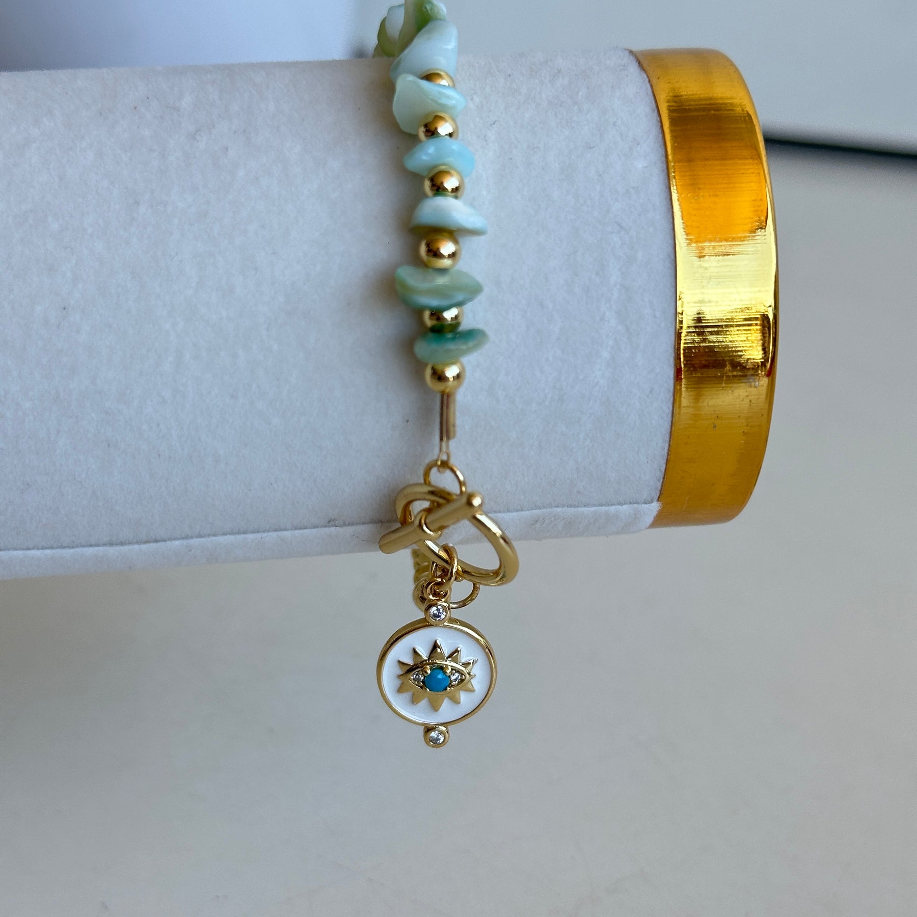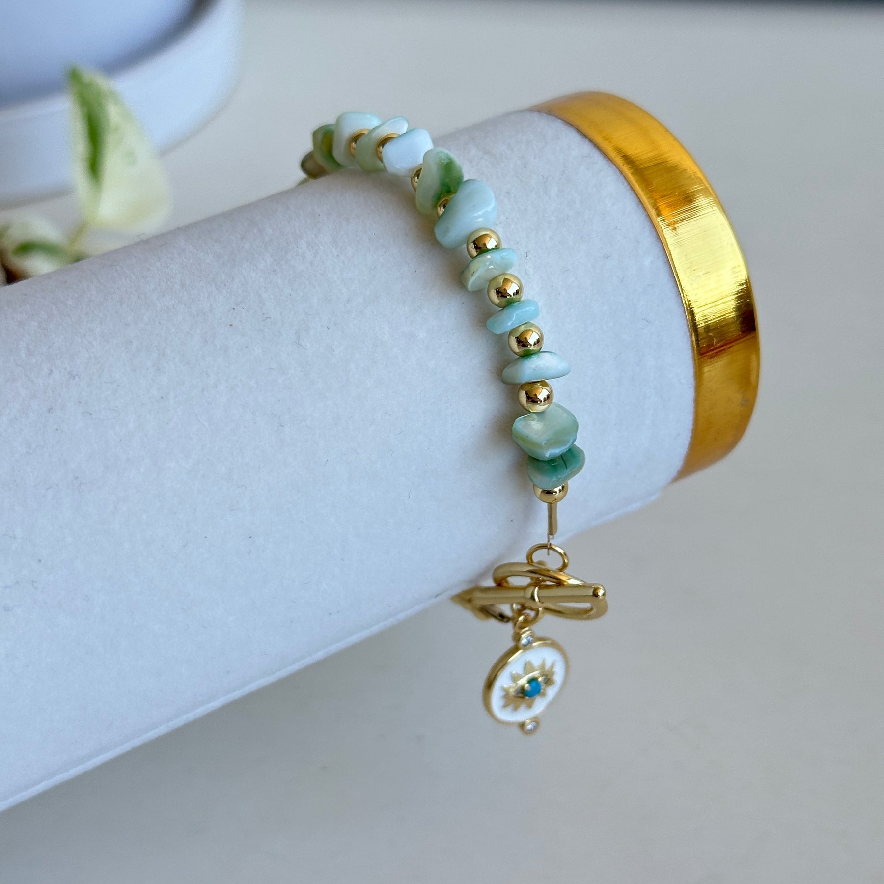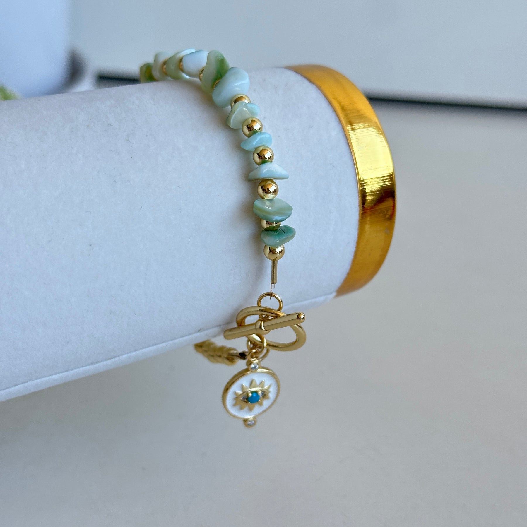 Gold Evil Eye Bracelet Green Beads