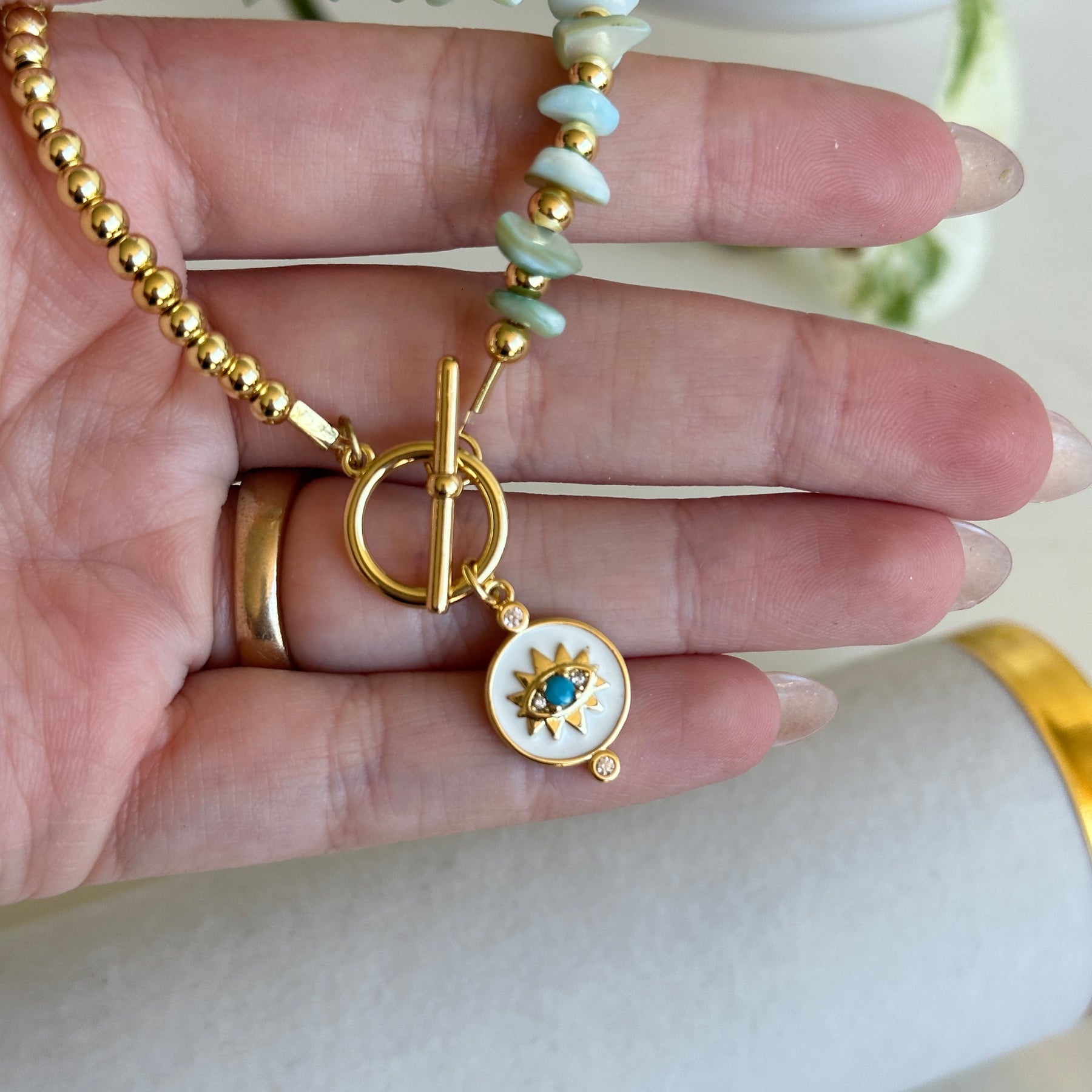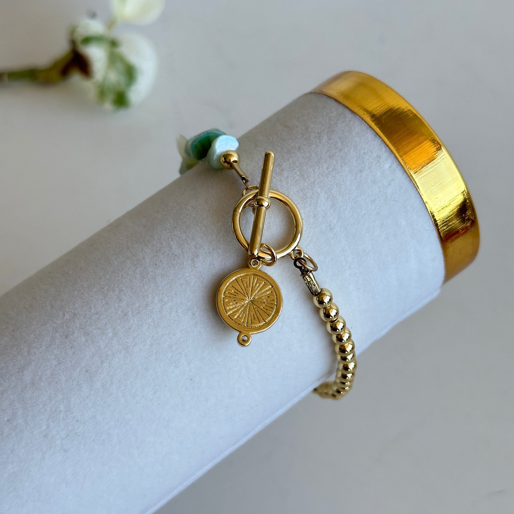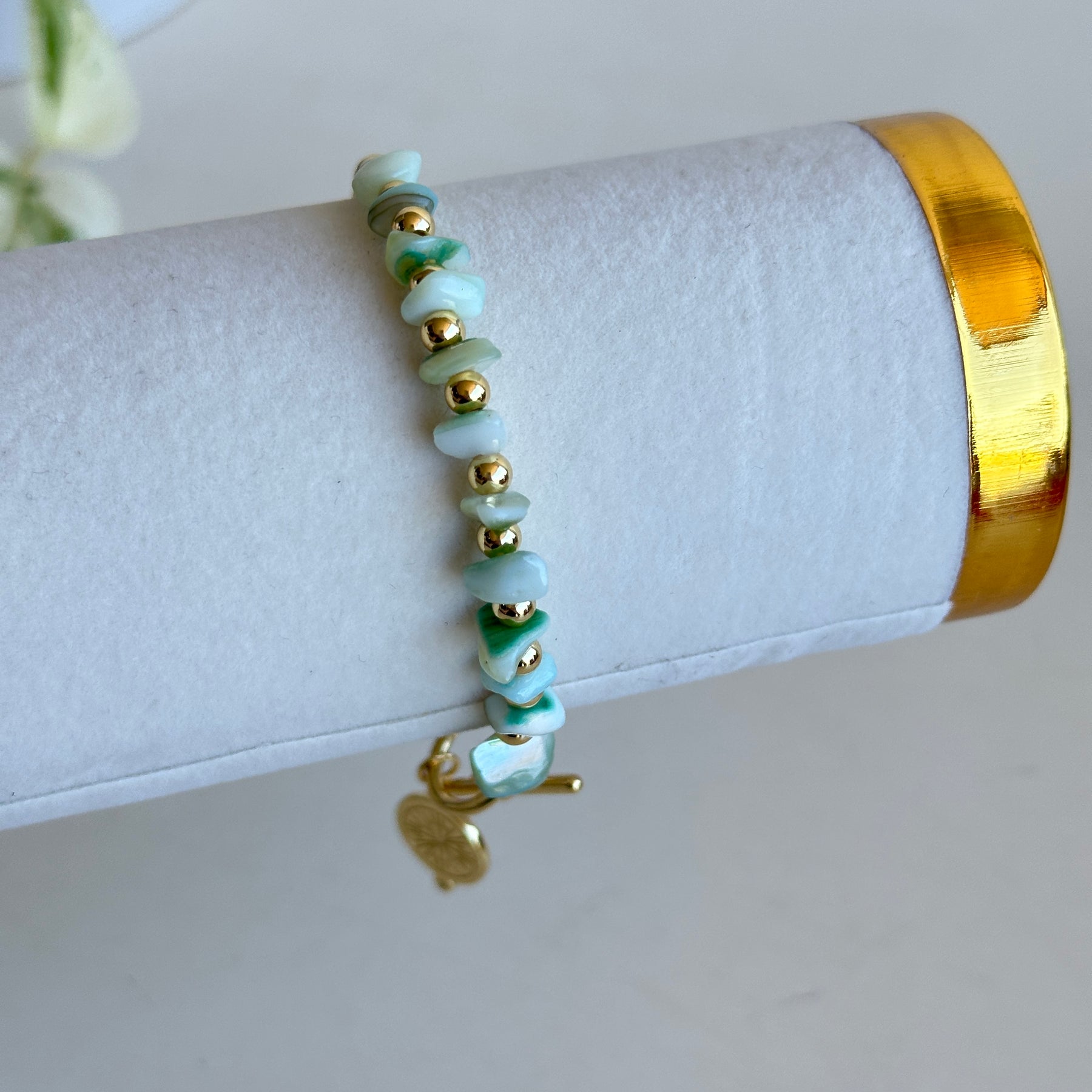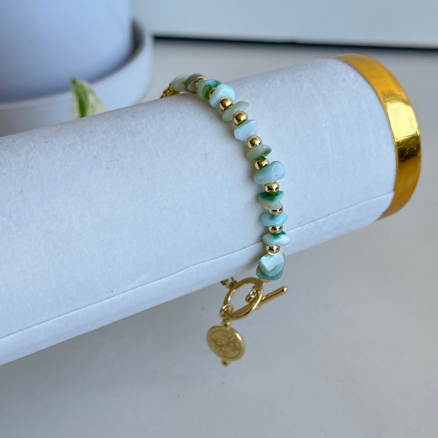 Gold Evil Eye Bracelet Green Beads