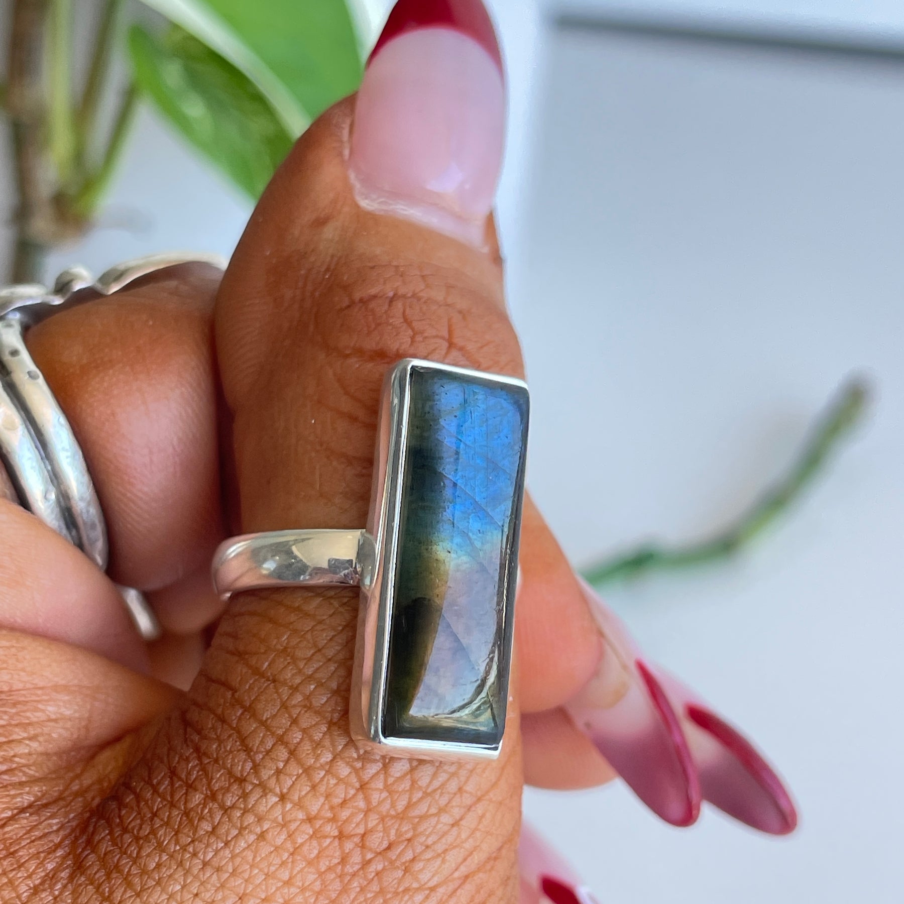 Labradorite Rectangle Ring Sz7.5