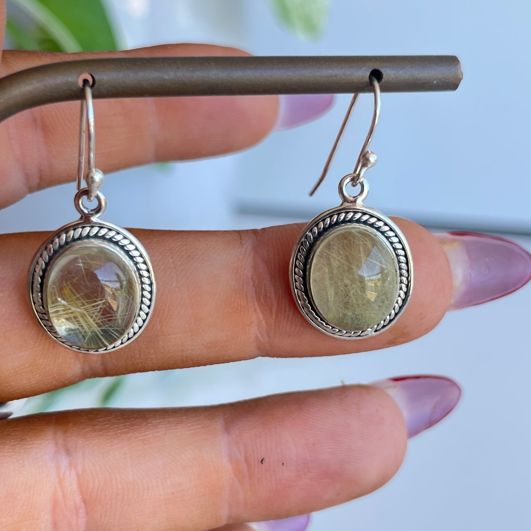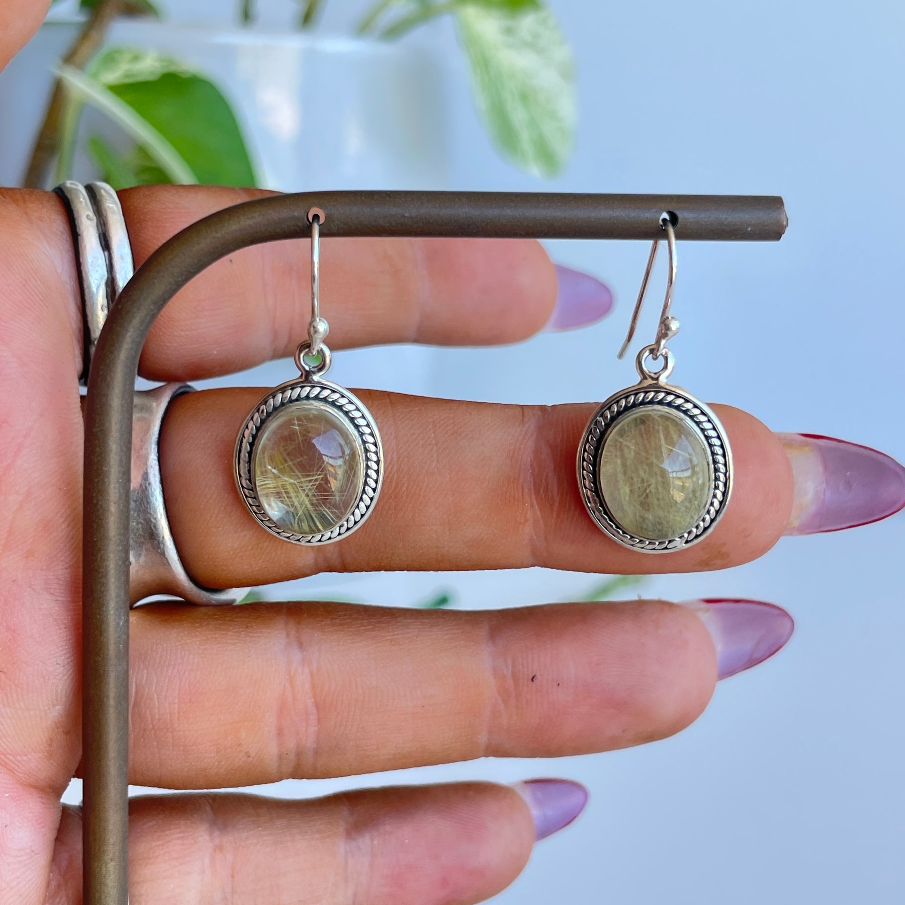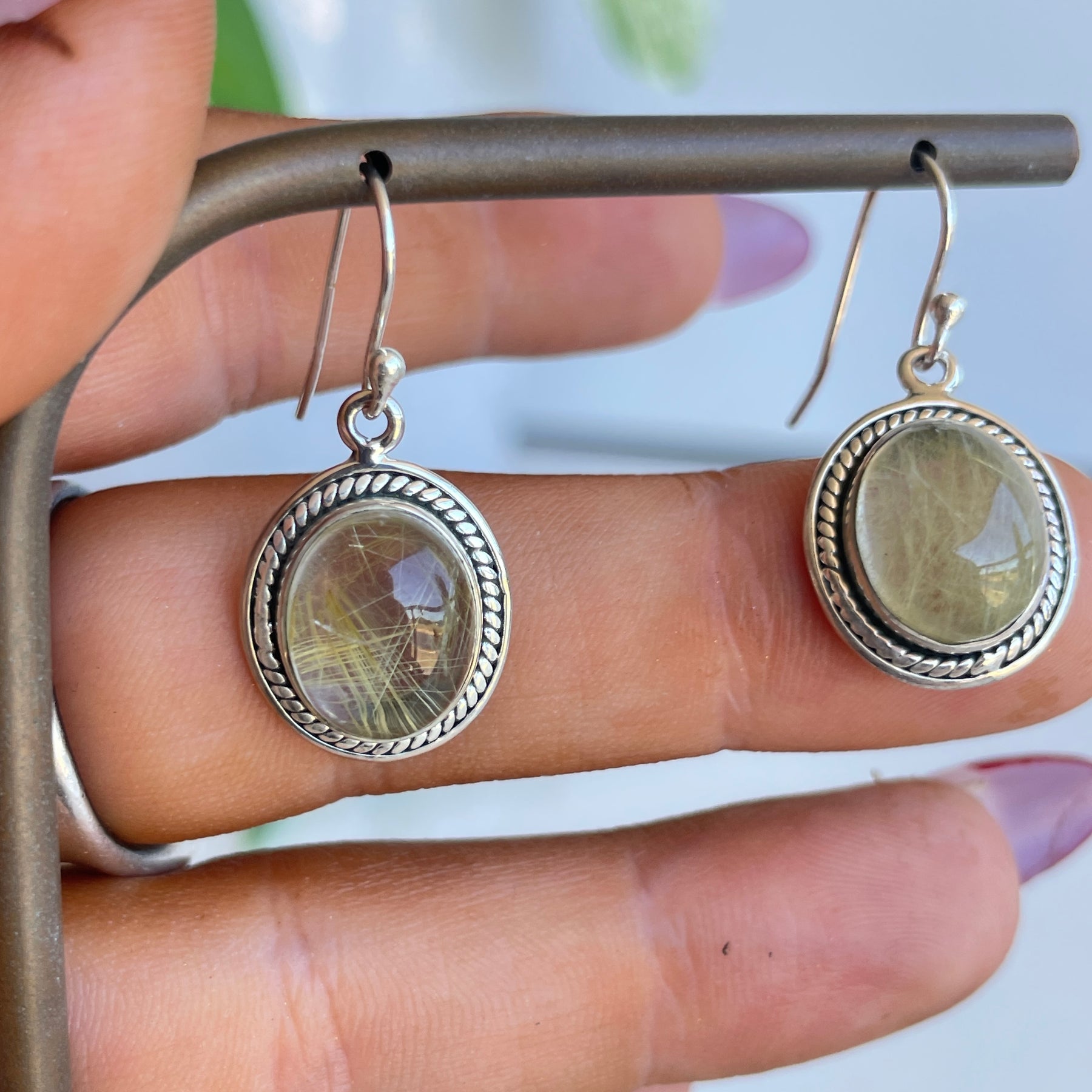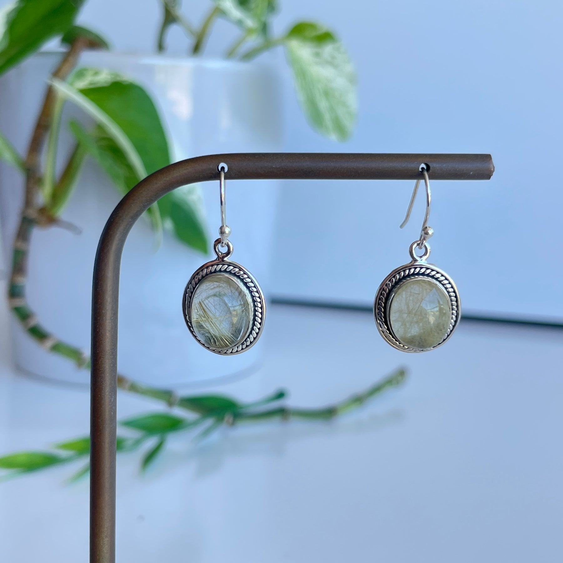 Rutilated Quartz Detailed Oval Earrings 001