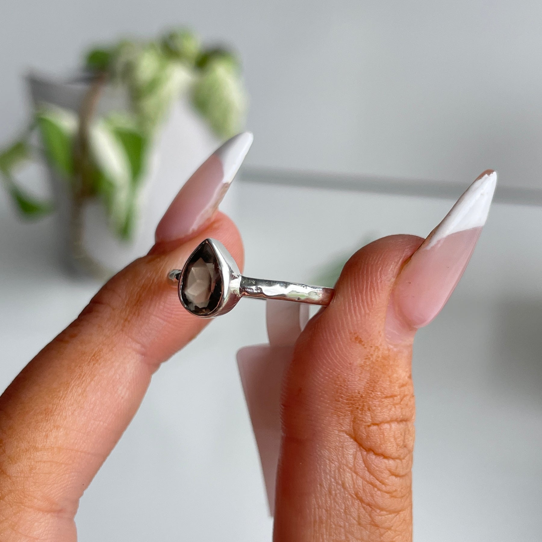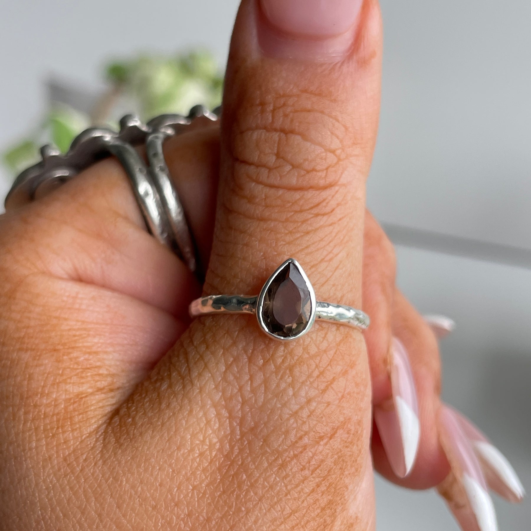 Smoky Quartz Teardrop Ring