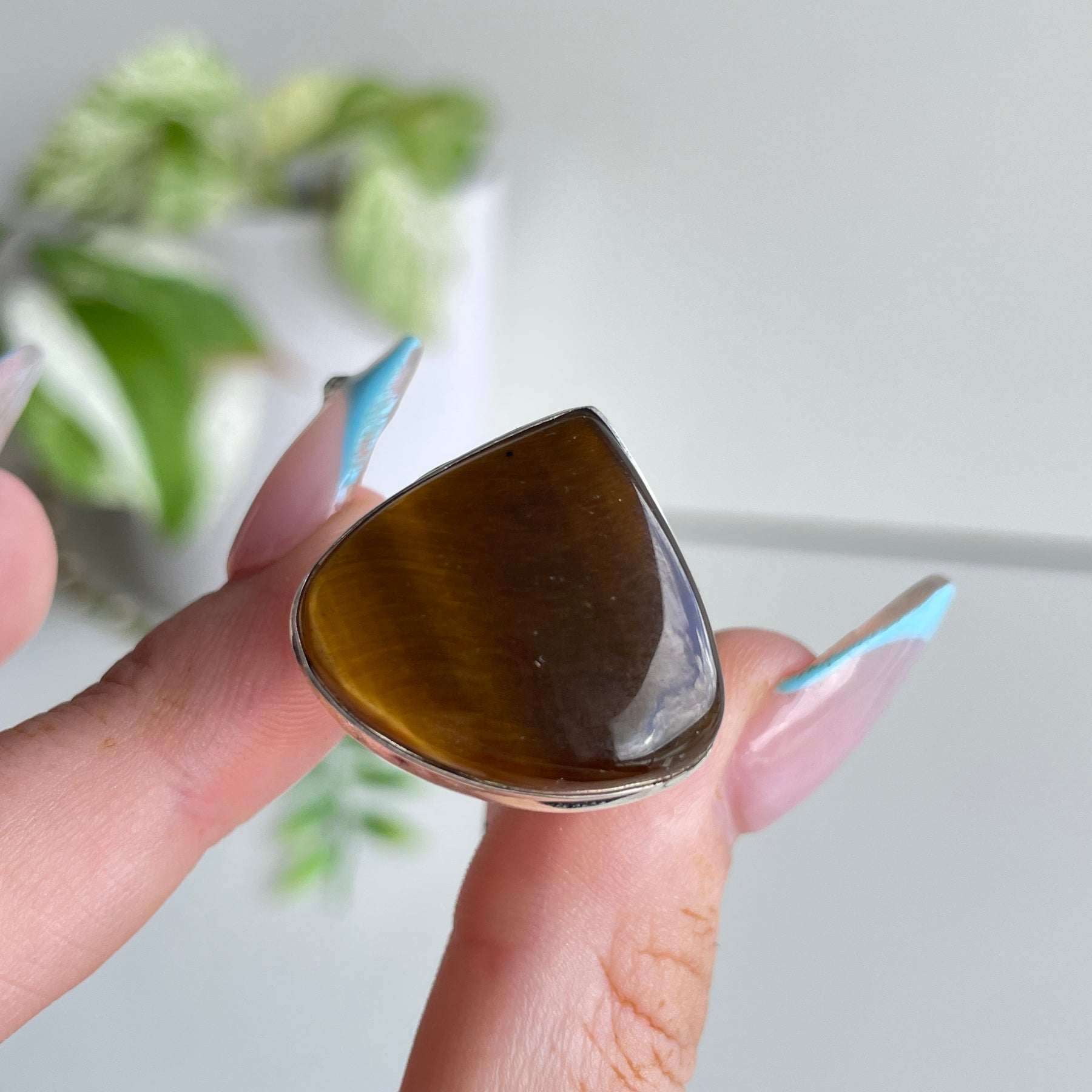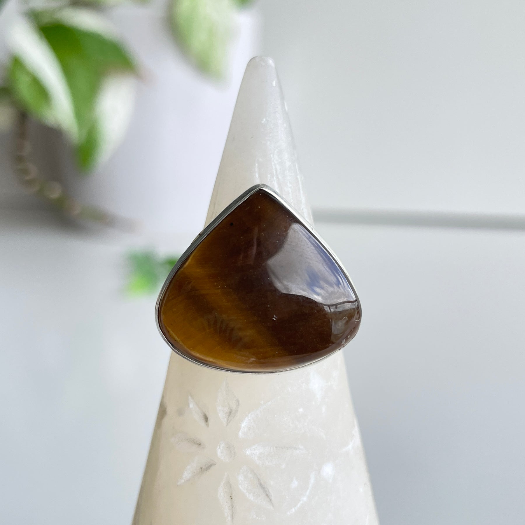 Tigers Eye Teardrop Ring Sz9