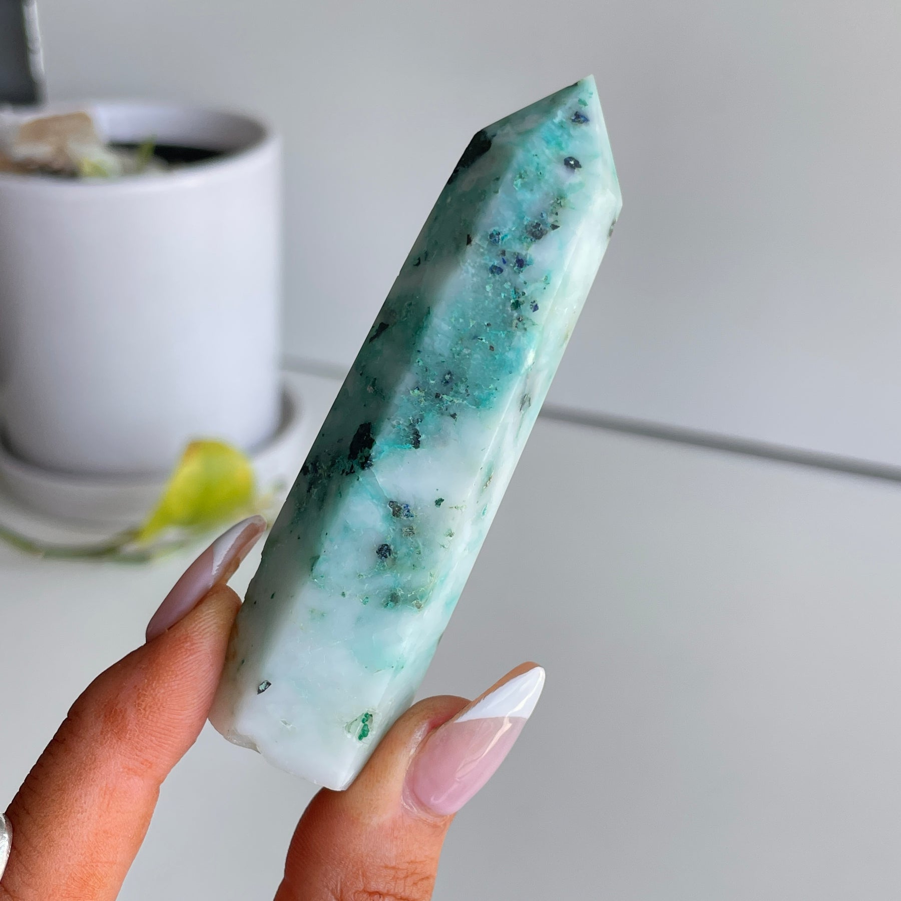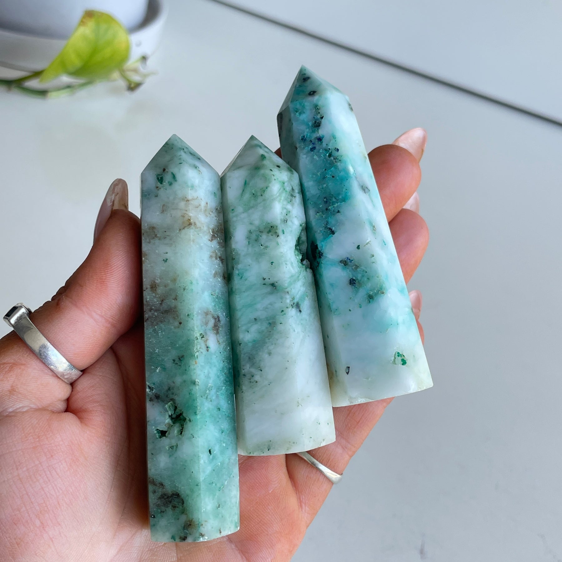 A combination of Chrysocolla, Malachite and Turquoise.