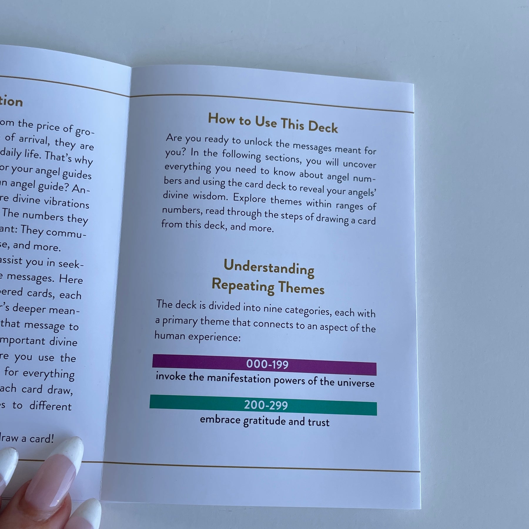 Whether you’re familiar with the concept or are just discovering it, The Angel Numbers Deck offers the insights you need to understand your angel numbers. It includes both the typical triple repeating digit numbers, as well as other non-repeating angel numbers, like 123, 717, and 911.